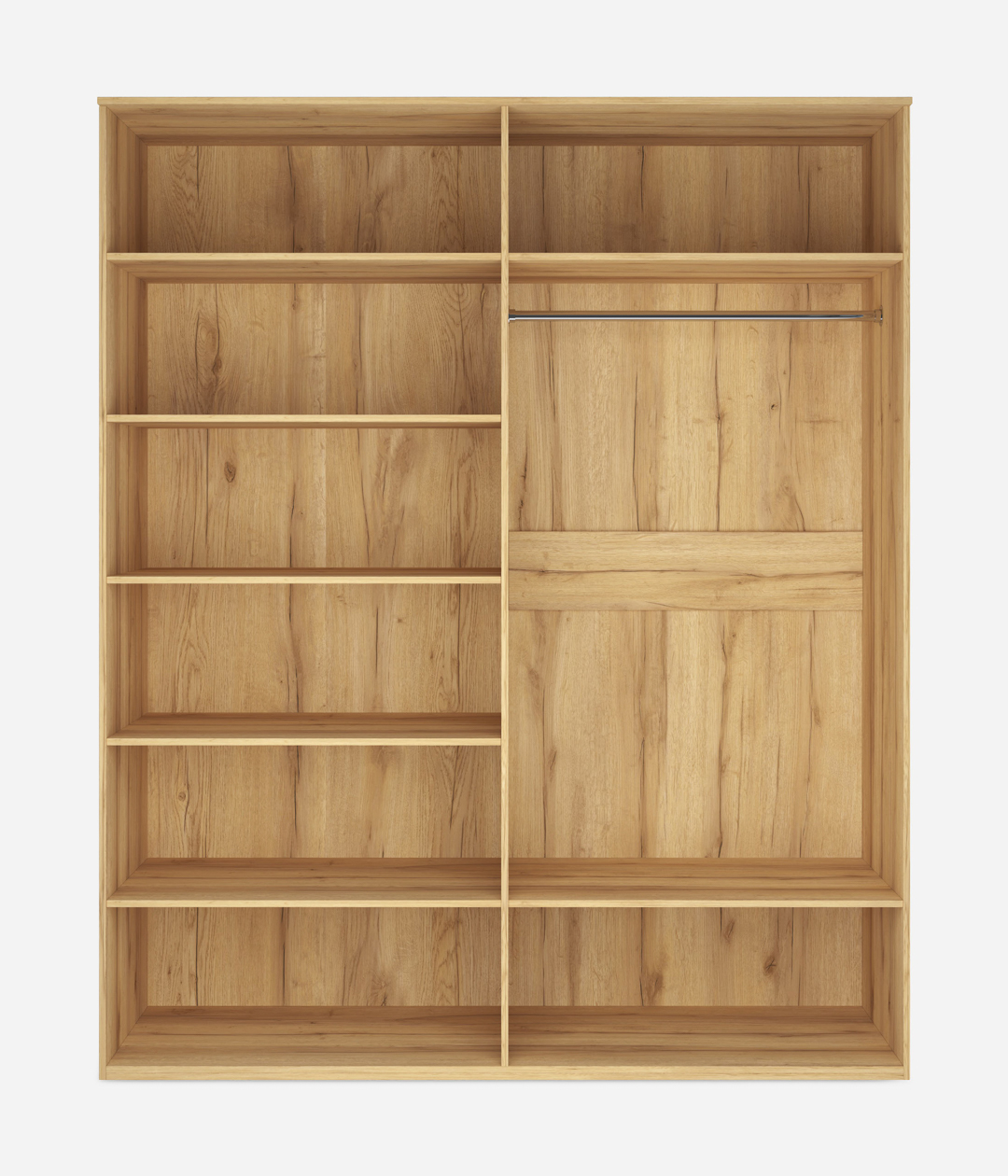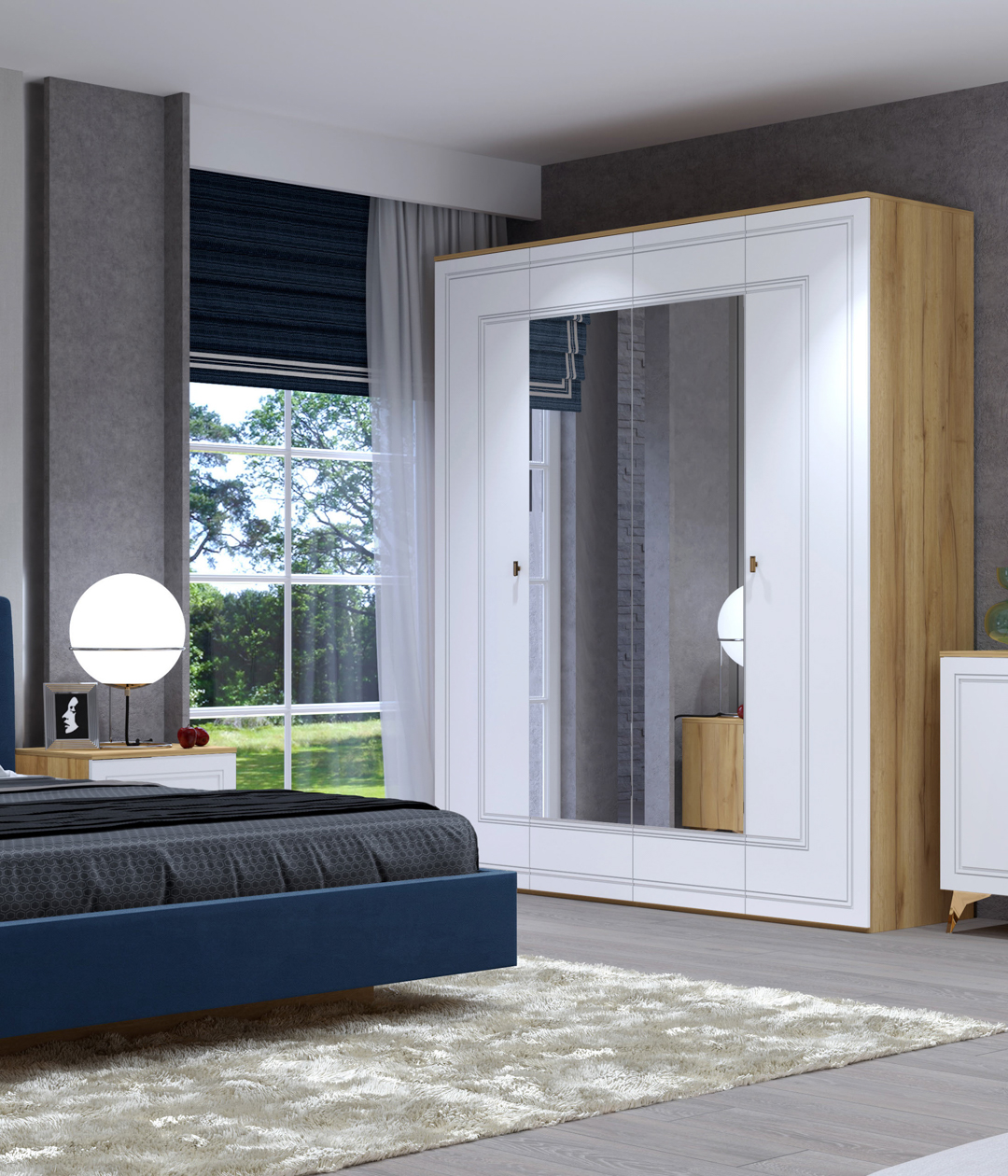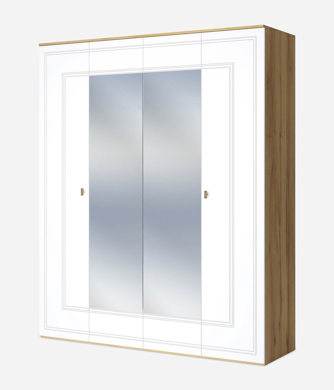Распашной шкаф Вега Сапфир — эстетичное решение для меблировки интерьера. Тонкие линии фрезеровки и миниатюрные ручки в оттенке золота создают элегантный образ модели. Внутри достаточно места для хранения любых предметов гардероба. Качественная фурнитура обеспечивают плавное и бесшумное закрывание дверок, а высокие зеркала визуально расширяют пространство.