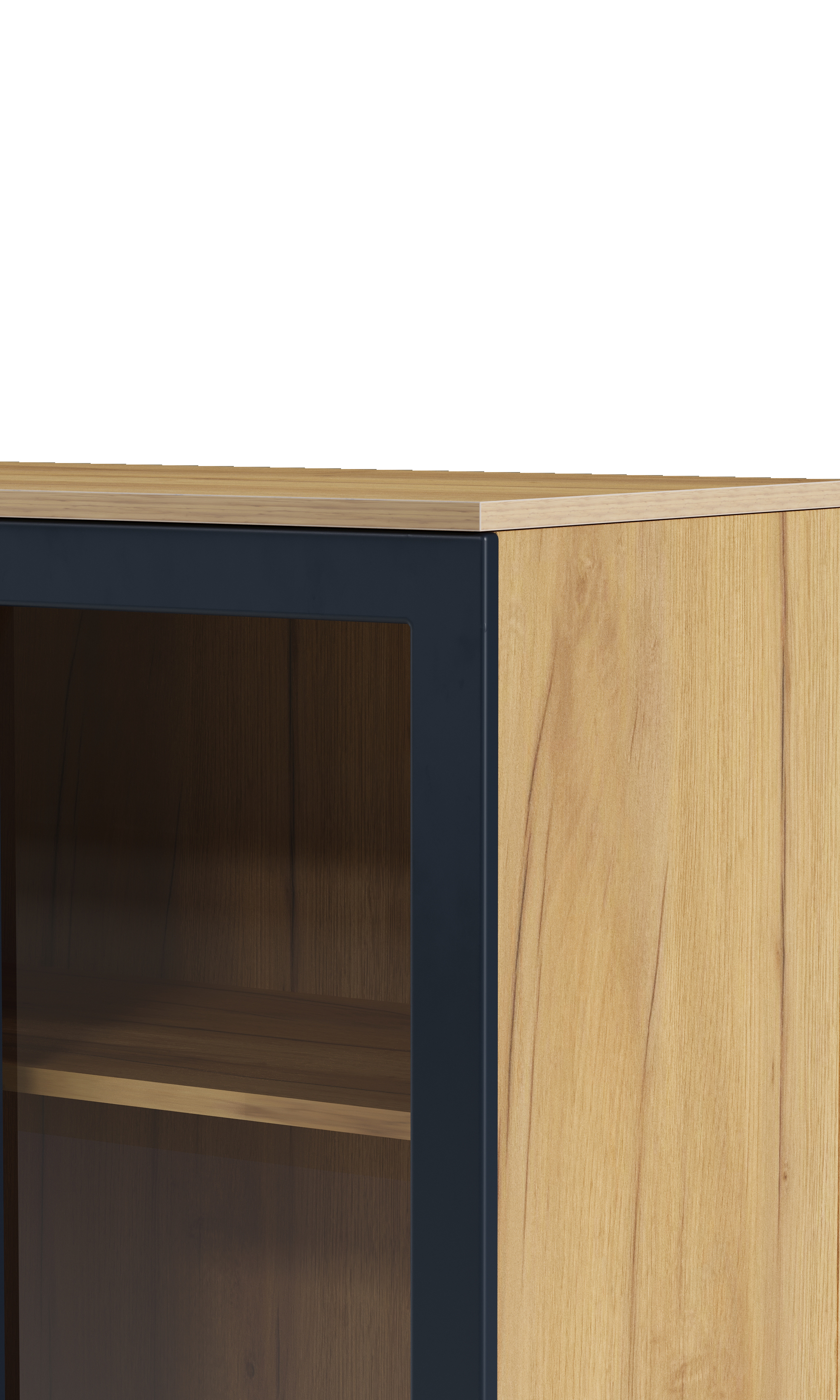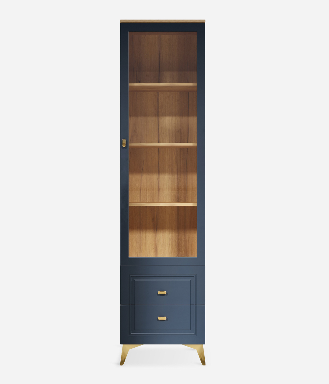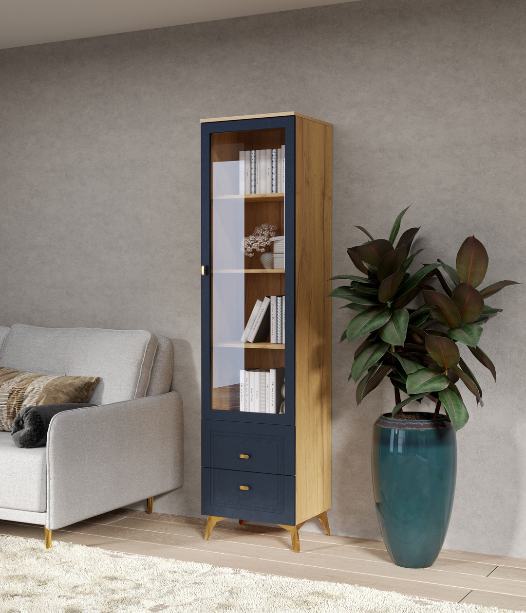 Шкаф-витрина Вега Сапфир станет украшением современной гостиной. Модель представляет идеальный баланс эстетики и комфорта. Фасады с элегантной фрезеровкой дополнены изящными акцентными ручками, что придает интерьеру более статусный вид.