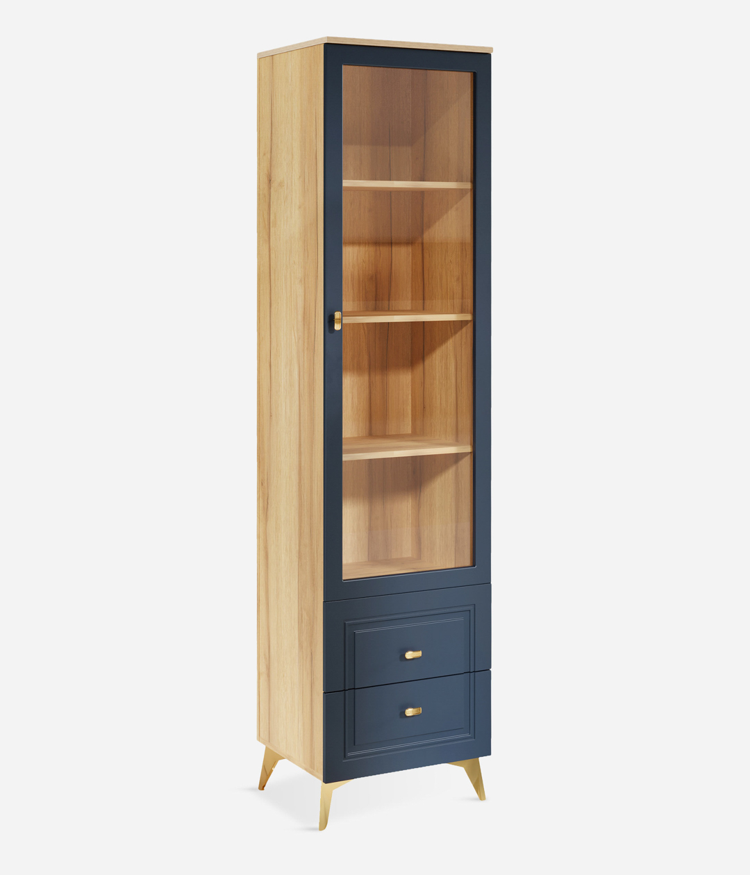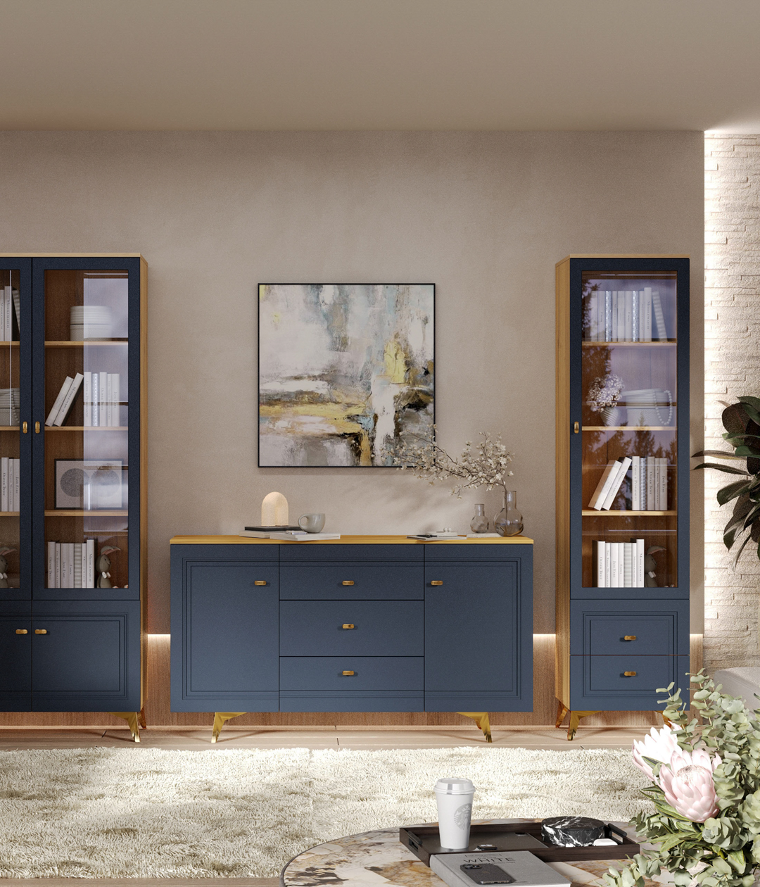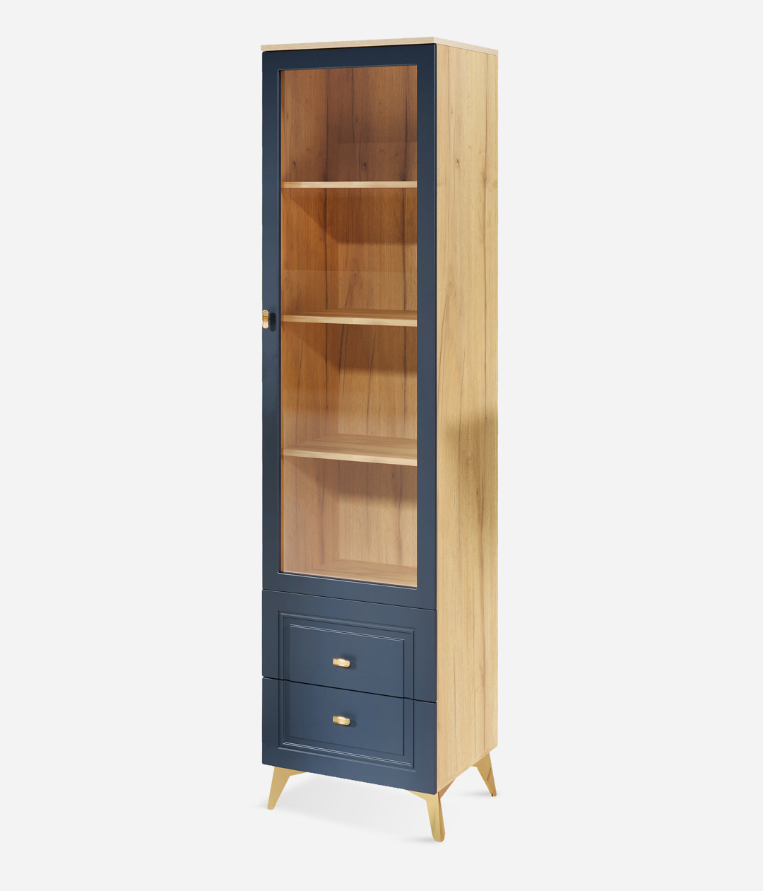Шкаф-витрина Вега Сапфир станет украшением современной гостиной. Модель представляет идеальный баланс эстетики и комфорта. Фасады с элегантной фрезеровкой дополнены изящными акцентными ручками, что придает интерьеру более статусный вид.