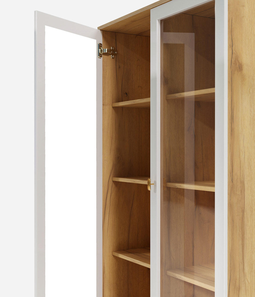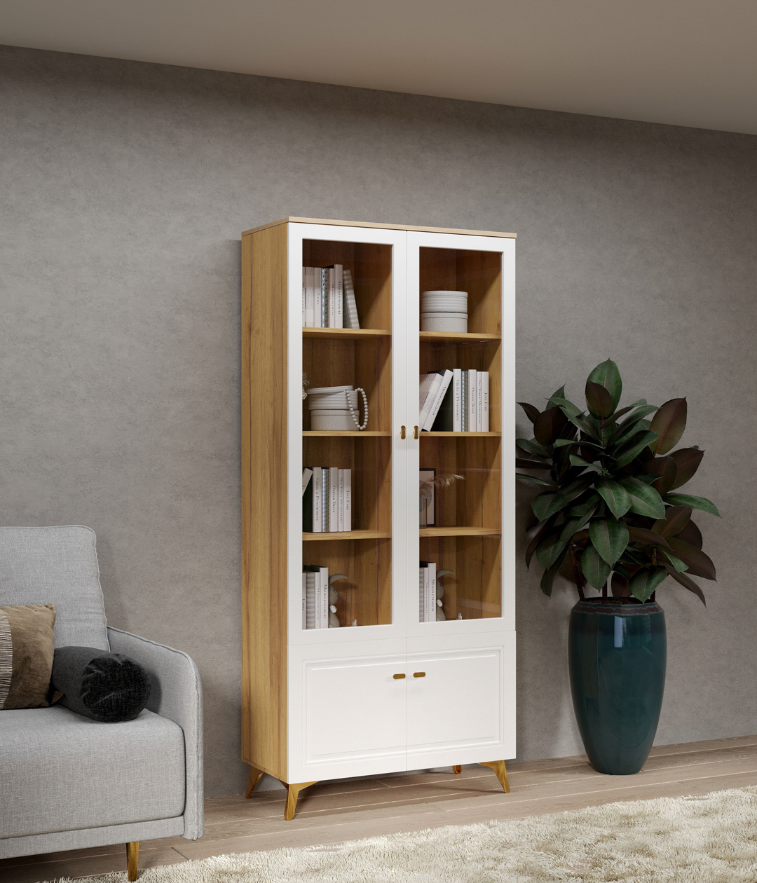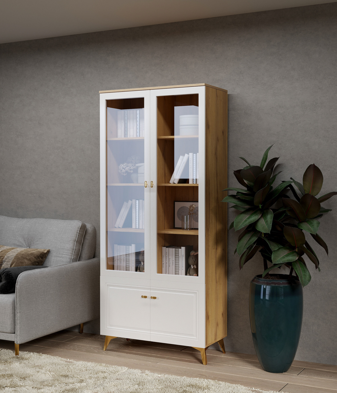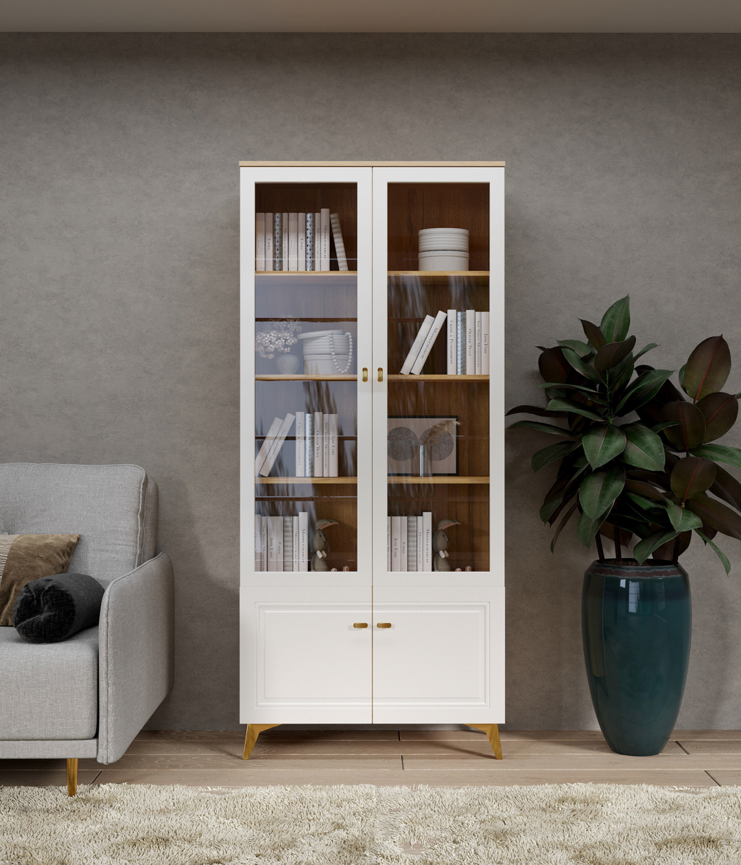 Шкаф-витрина Вега Сапфир подойдет для любой комнаты, где нужно организовать эффектное хранение ценных вещей: коллекционных книг, посуды для особых случаев или предметов декора. Стекло защитит содержимое от пыли и солнечного света. Ножки в цвет фурнитуры дополняют облик модели, создавая интересные акценты.