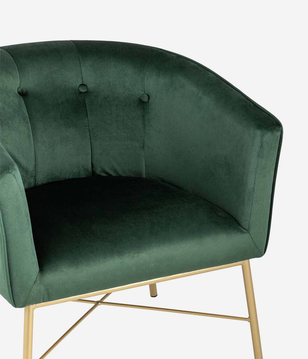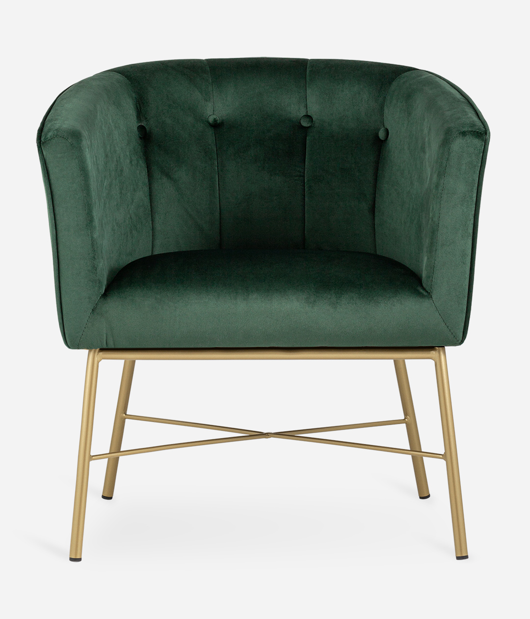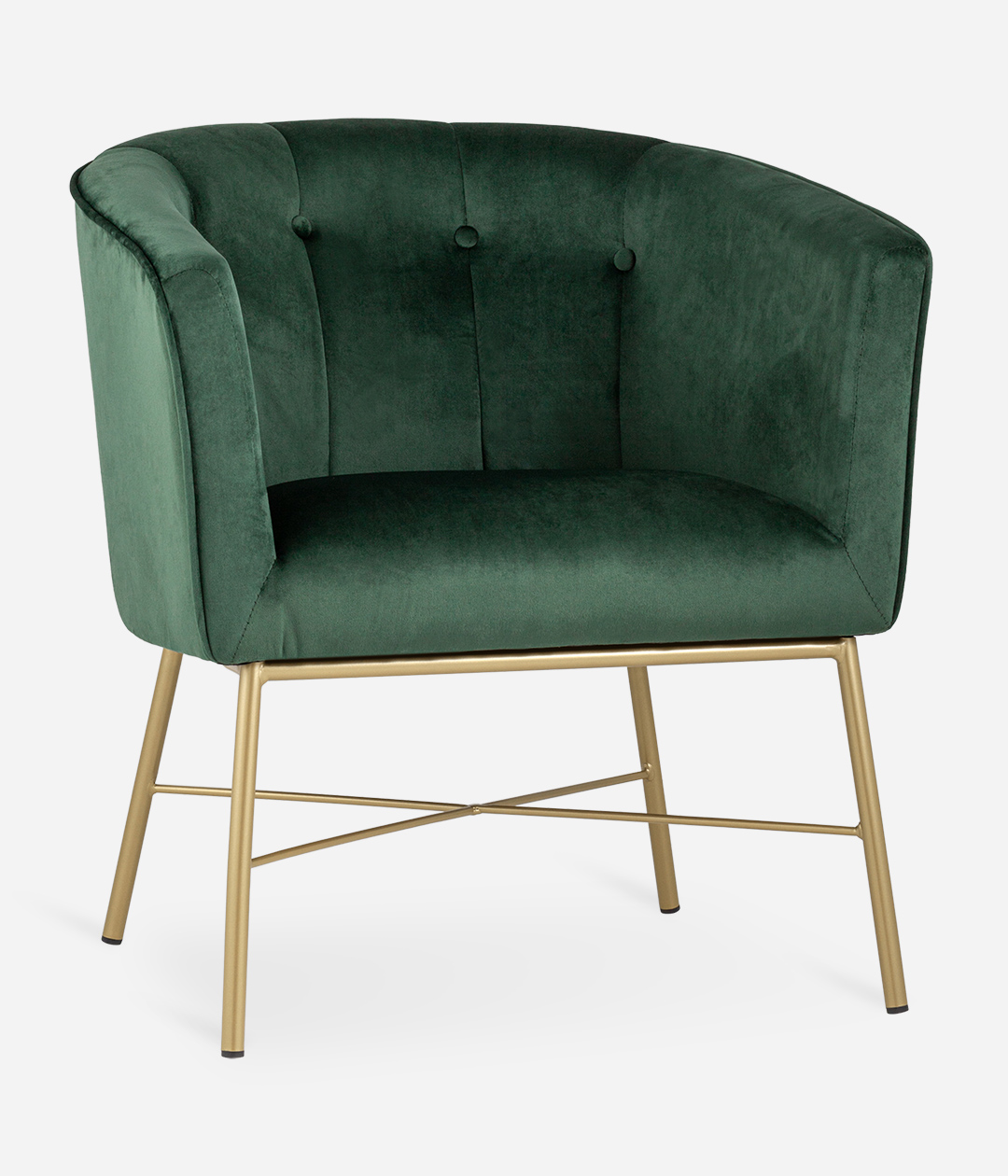 Современное и уютное кресло с подлокотниками и металлическими ножками.