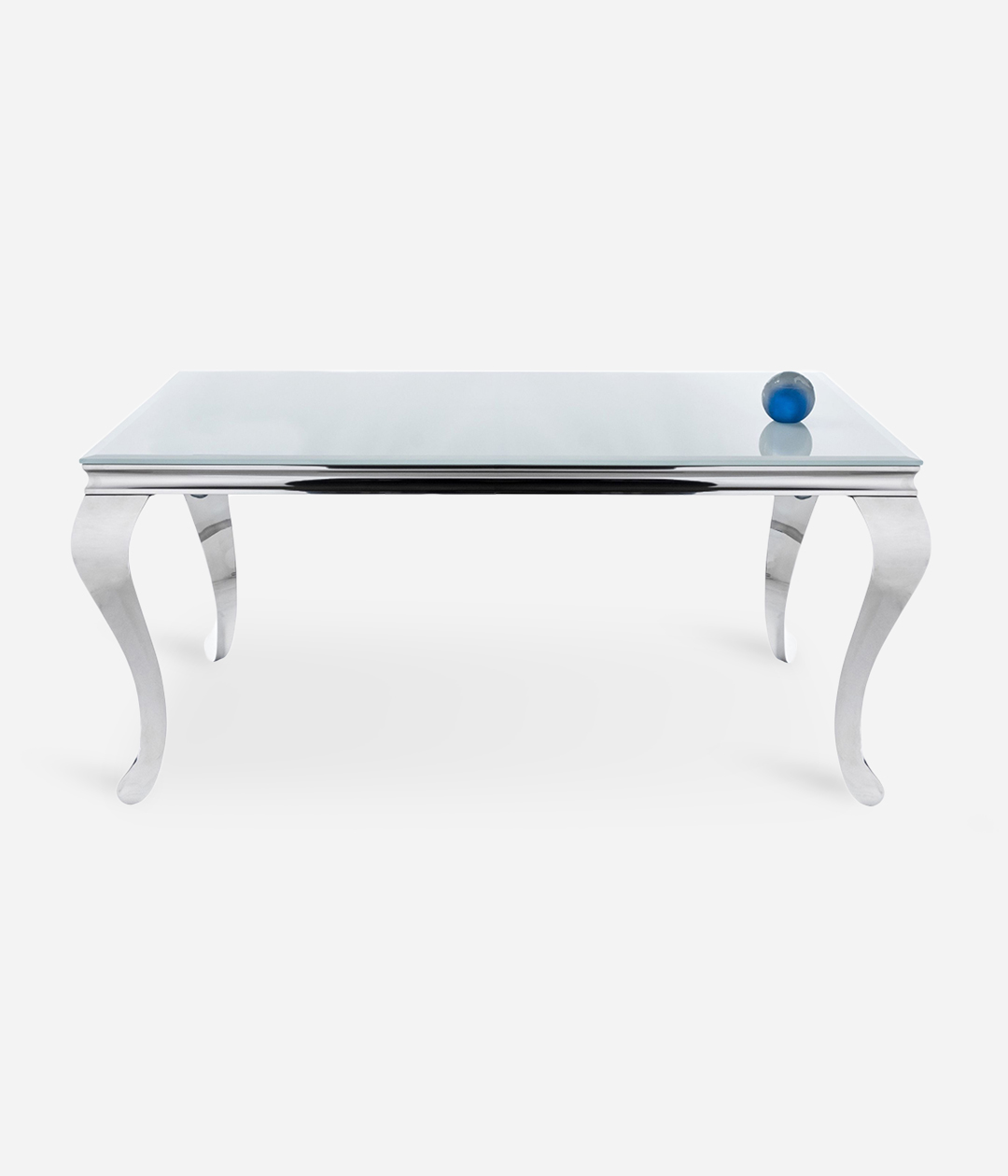 Стеклянный стол Sondal - это огромный прямоугольный стол размером 160 см, с каркасом и ножками из хромированного гальванизированного металла, а столешница выполнена из закаленного стекла. Массивные ножки обеспечивают стабильность и надежность стола, а закаленное стекло делает его прочным и долговечным. Стильный и современный дизайн стола будет удачным выбором для любого интерьера.