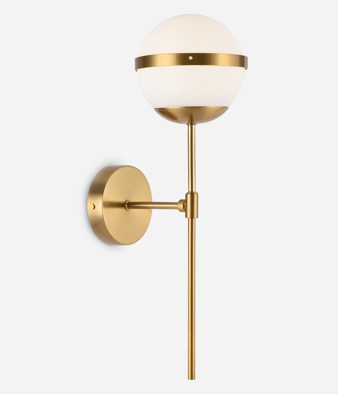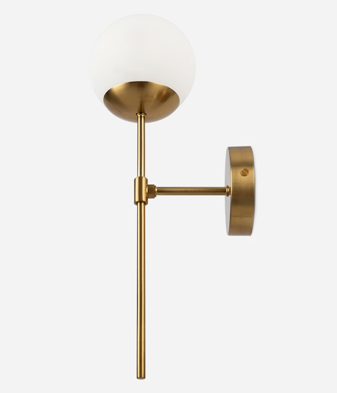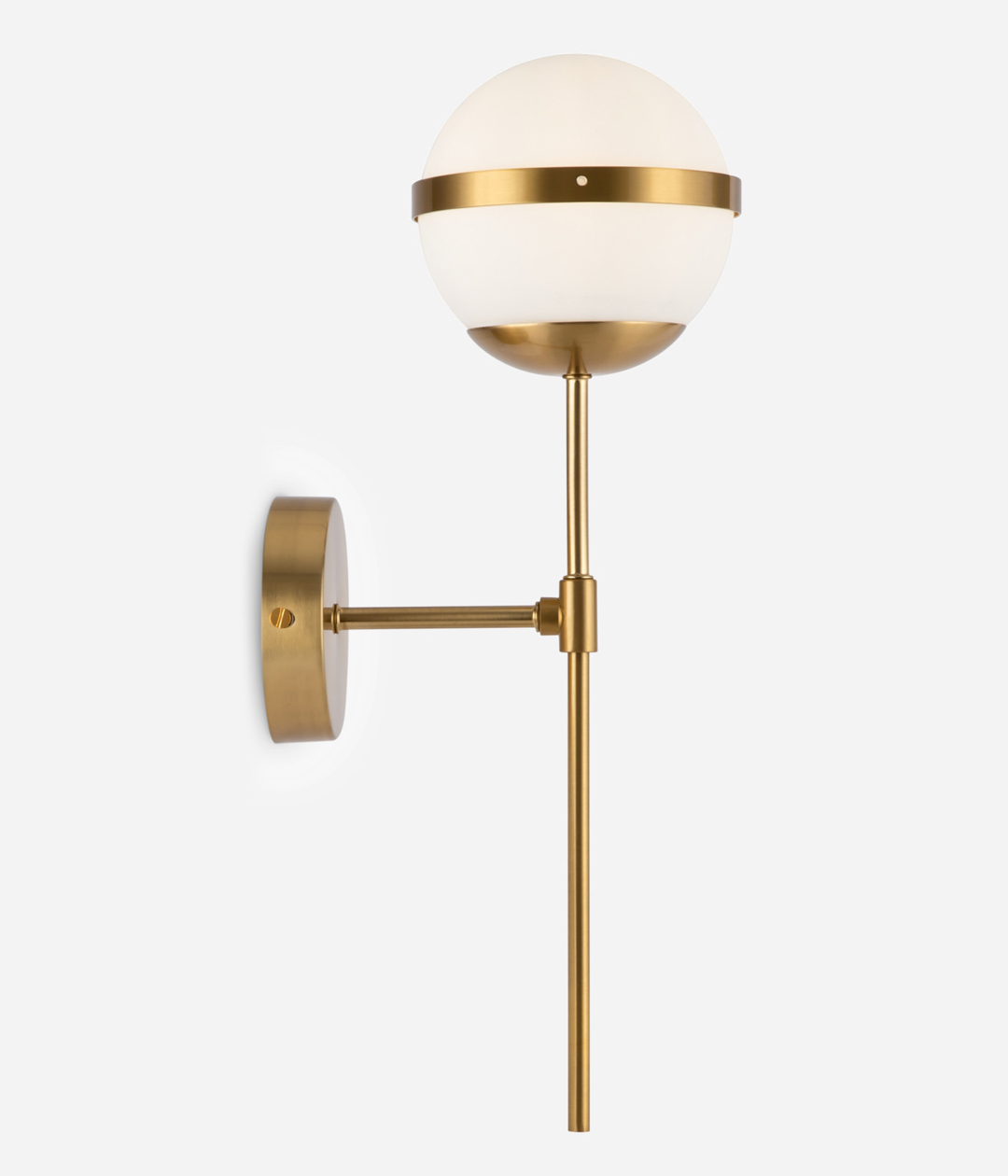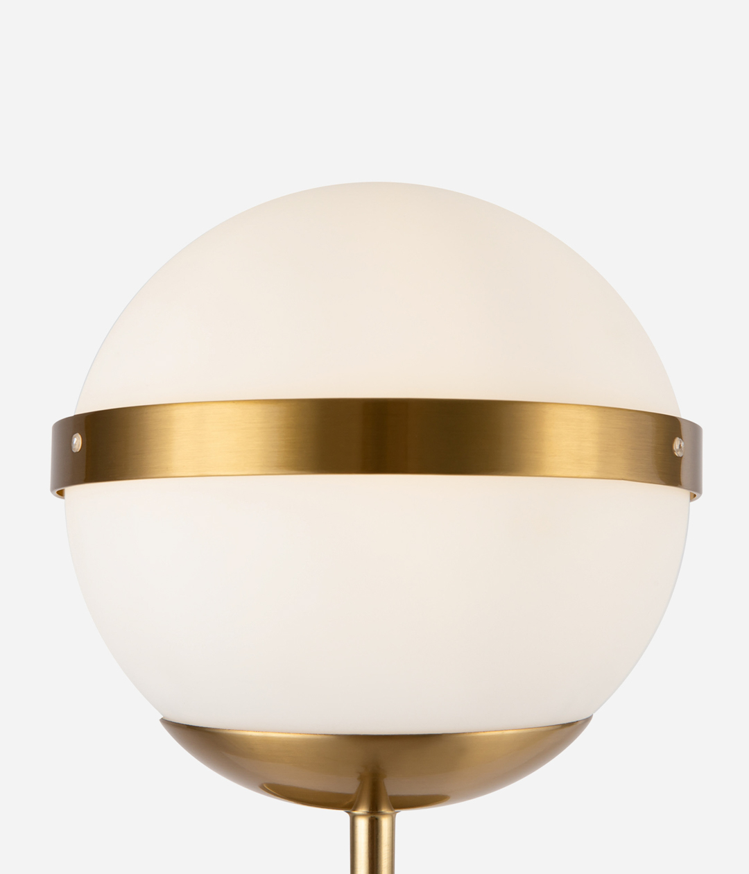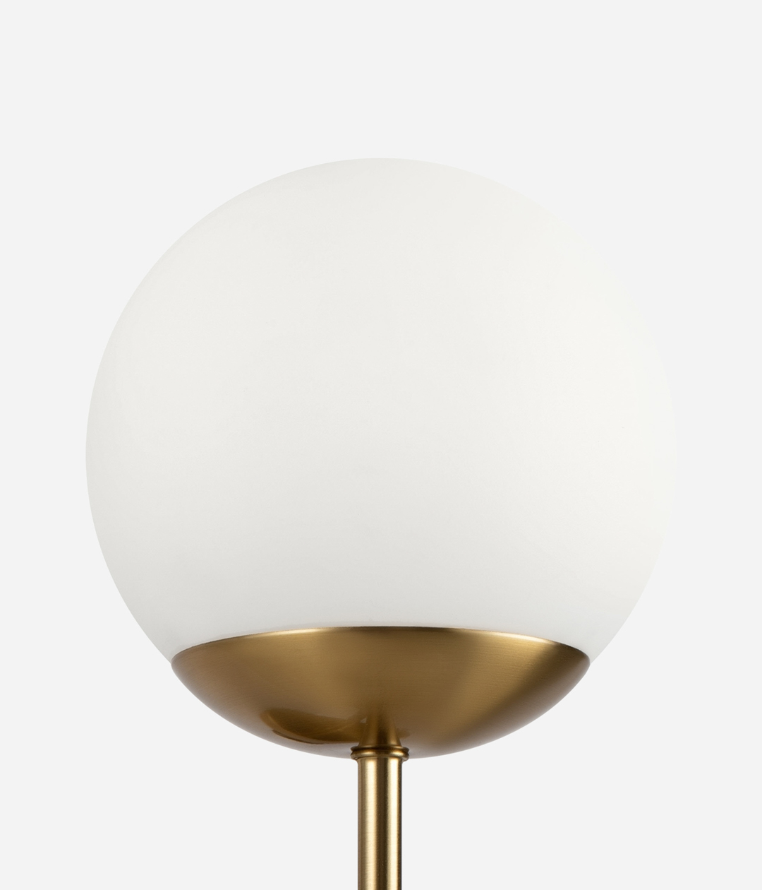 Светильник Sonder, вдохновленная работами ретрофутуристов, имитирует движение планет, каждая из которых направляется по своей траектории. Такое дизайн-решение не только стильно и нетривиально смотрится, но и обеспечивает равномерное распределение светового потока. Металлическая арматура, окрашенная в цвет латуни, отличается строгой геометрией. Плафоны-сферы выполнены из матового белого стекла. Они мягко рассеивают свет, делая его комфортным для зрения. Также плафоны декорированы кантом в тон арматуре – небольшая деталь создает цельный и завершенный образ композиции.