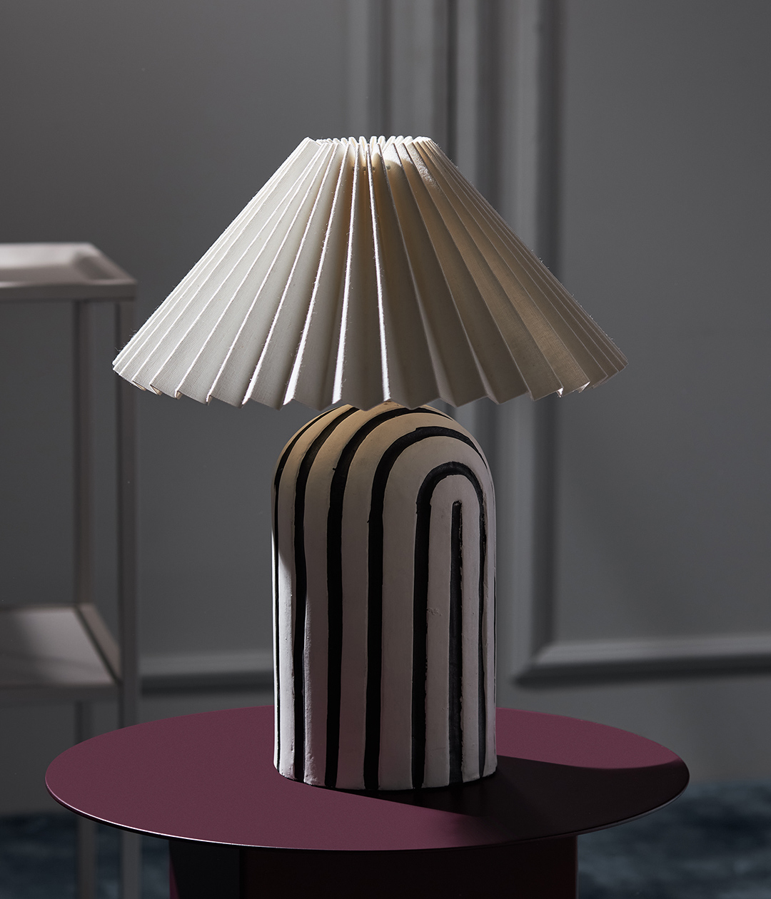 Лампа настольная Stripel станет украшением любого интерьера и центром притяжения взглядов. Для производства светильника использовался натуральный хлопок и уникальный материал – папье-маше.