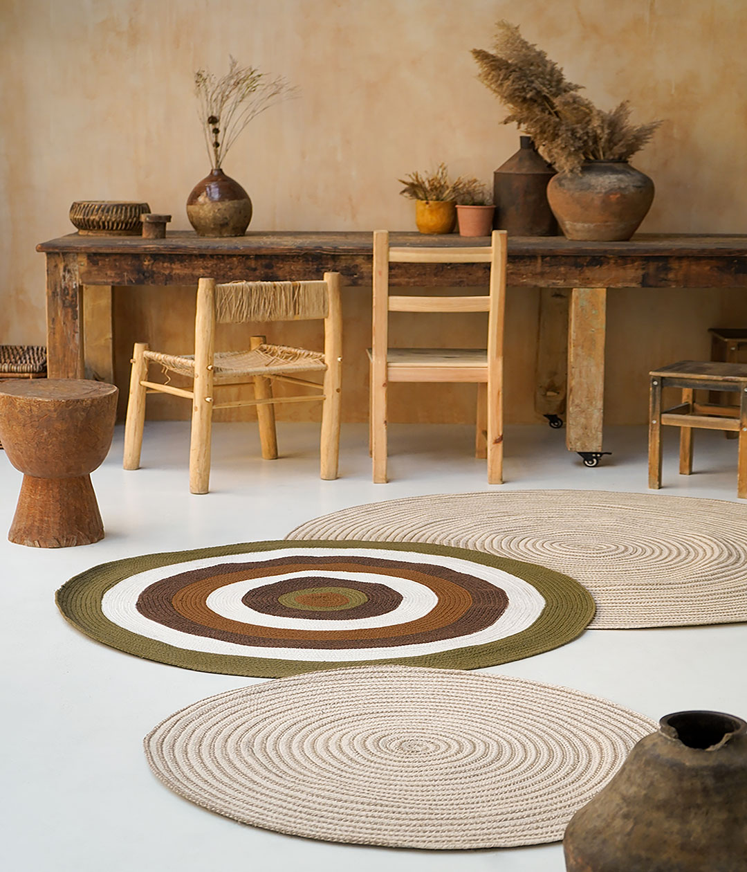 Ковер из хлопка Target бежевого цвета из коллекции Ethnic прекрасно подойдет для создания в помещении уютной атмосферы. Изделие округлой формы привнесет в оформление комнаты ощущение гармонии и легкости. Простой геометрический узор в спокойной цветовой гамме сочетается с любым декором.