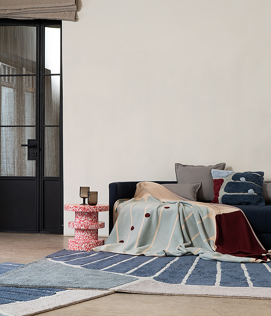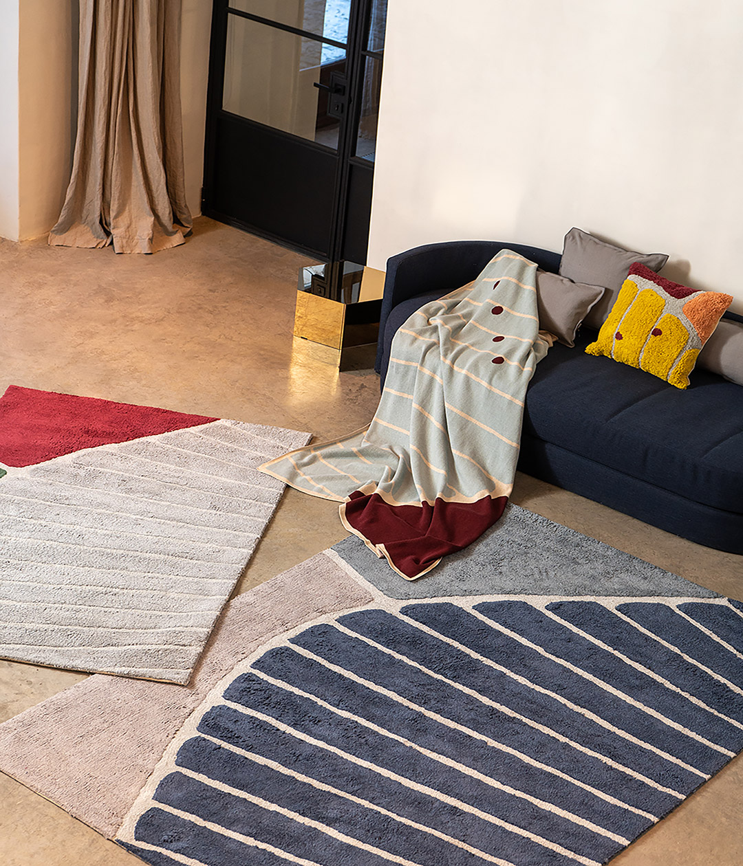 Ковер ворсовый из хлопка с рисунком Tea plantation серого цвета из коллекции Terra сделает интерьер гостиной, спальни, прихожей или рабочего кабинета более уютным и оригинальным.