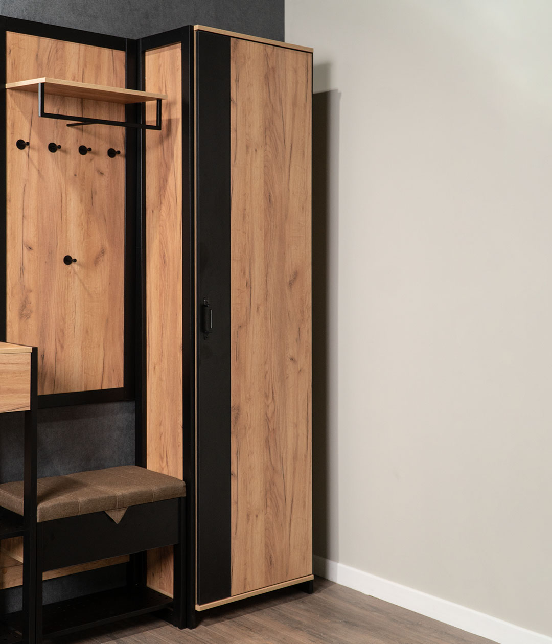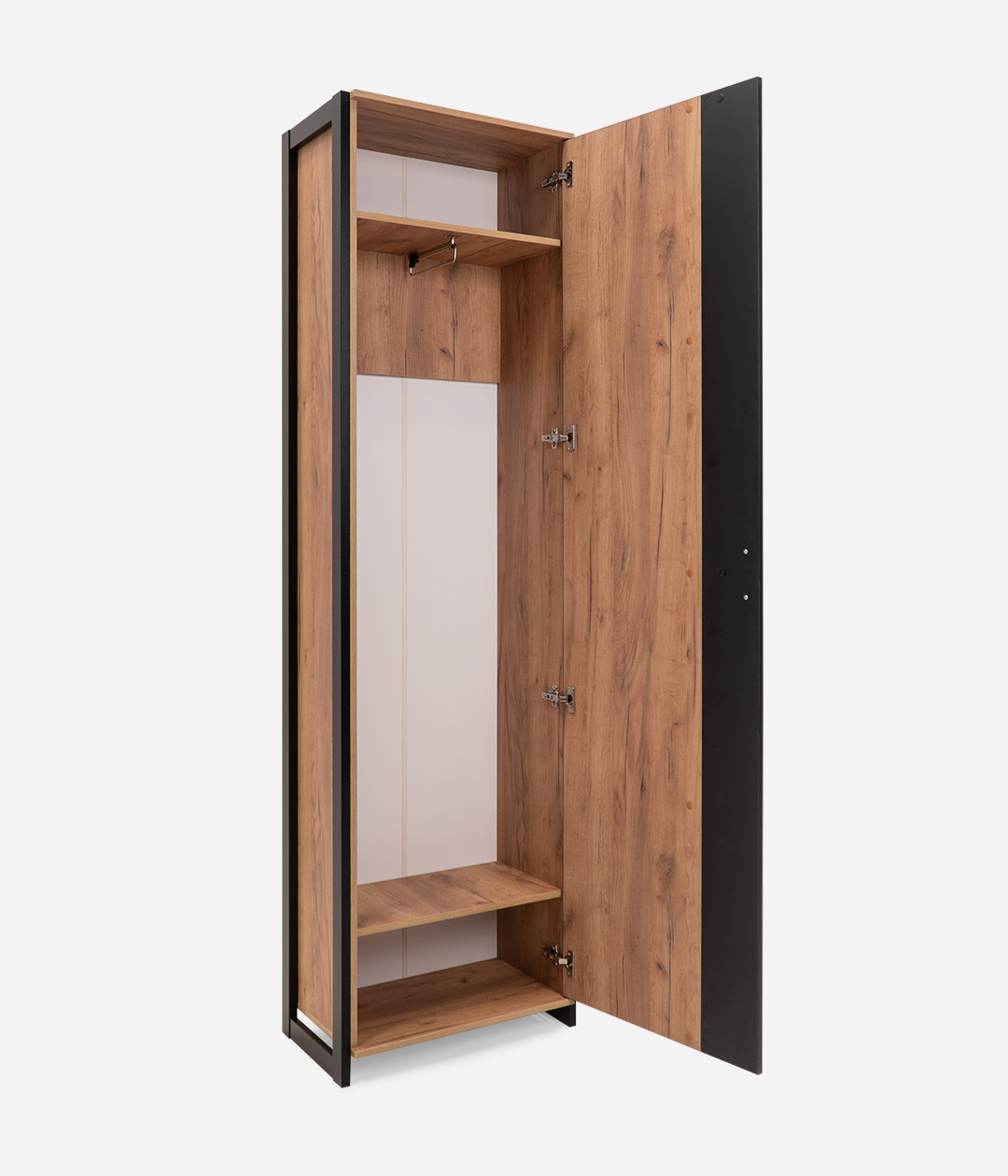 Распашной шкаф Техно — компактная модель для хранения гардероба, которая отлично подойдёт для установки в прихожую или комнату.