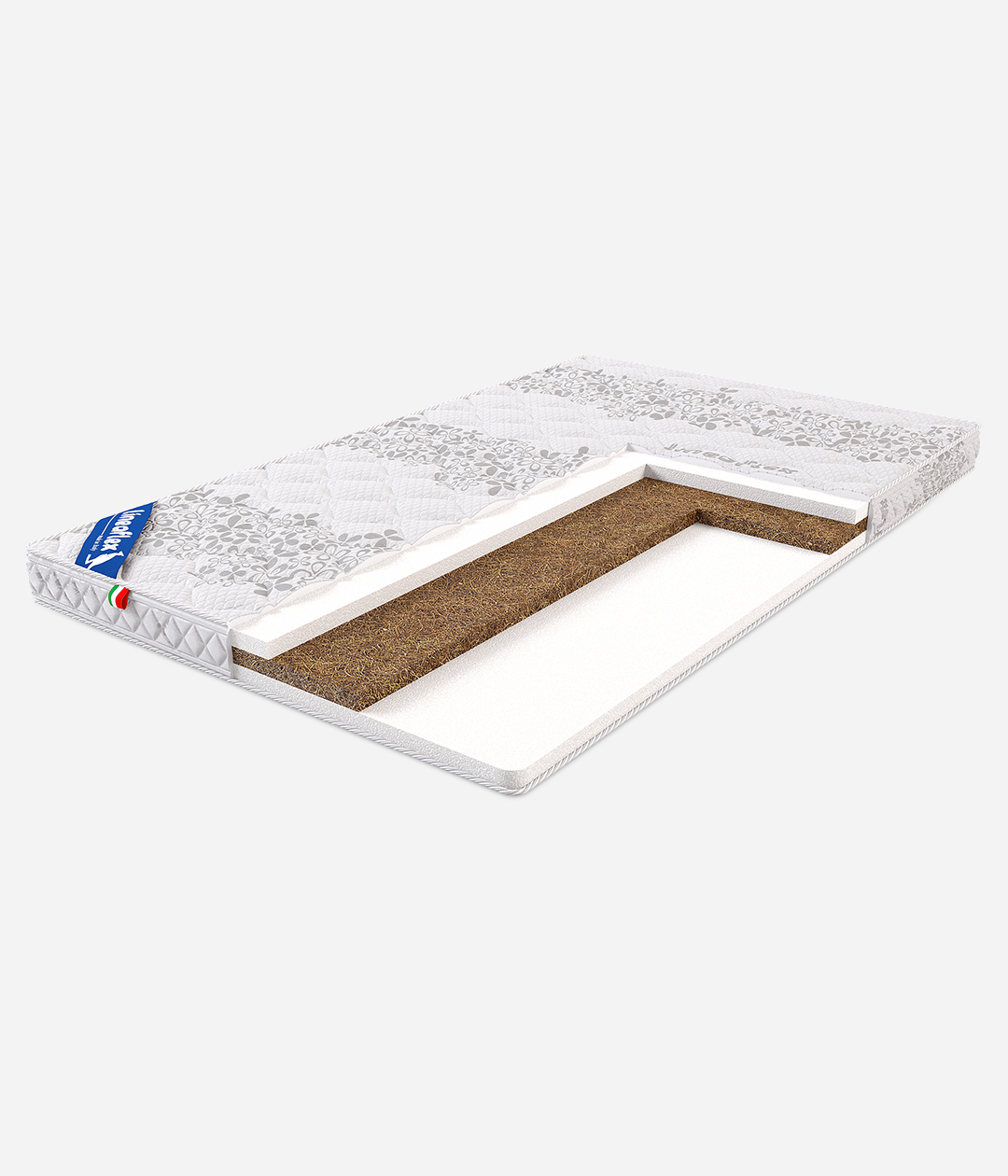 Прочное кокосовое волокно пропитано натуральным латексом, чтобы получить требуемую упругость и устойчивость к нагрузкам. Слои кокоса увеличивают жесткость матраса. К тому же, материал обладает уникальным сочетанием свойств: влагостойкость, воздухопроницаемость и гипоаллергенность.