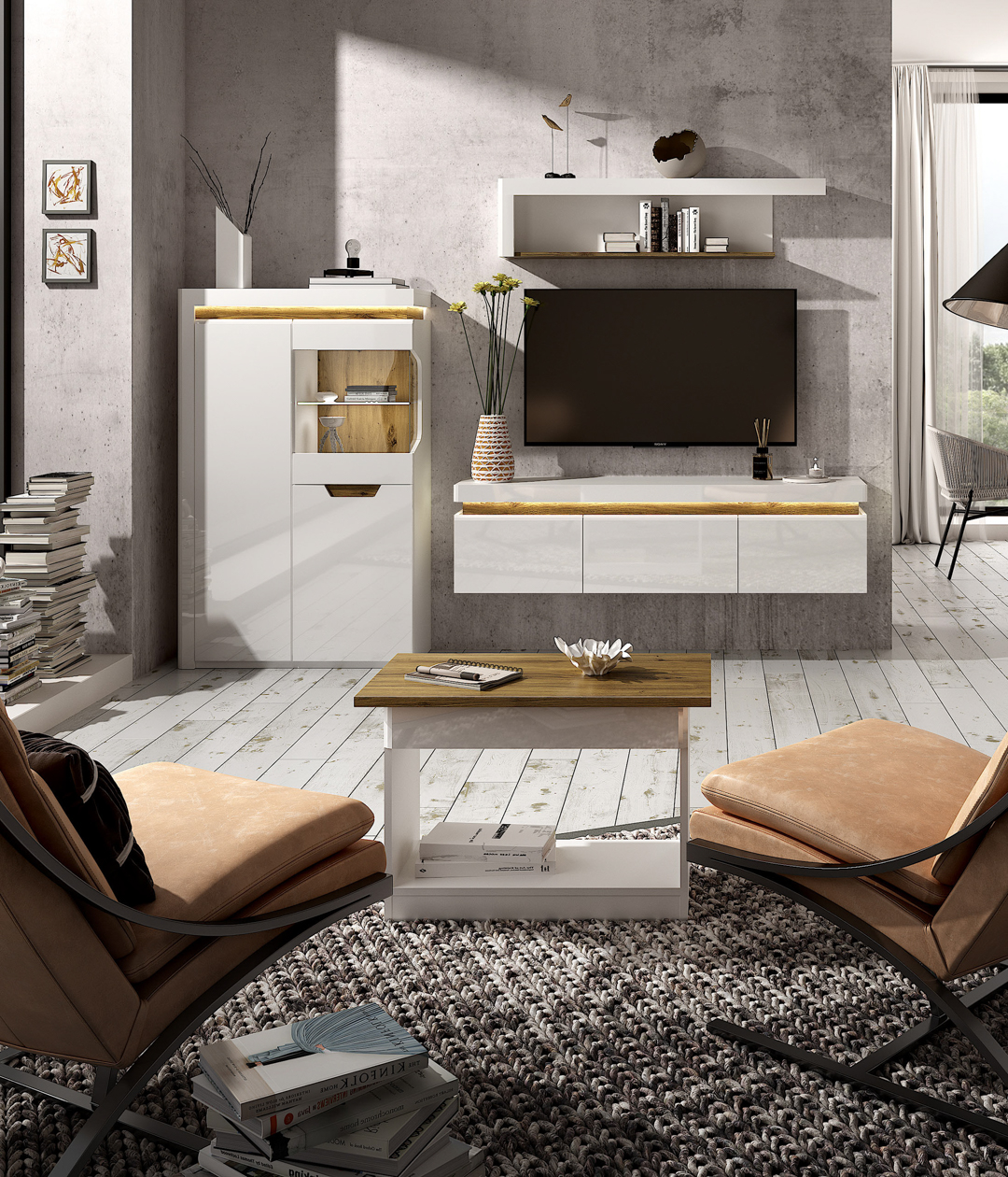 Журнальный столик Торино — лаконичная модель для современного интерьера гостиной. Гармоничное сочетание белого основания и столешницы оттенка натурального дерева придает столику эстетичный вид.