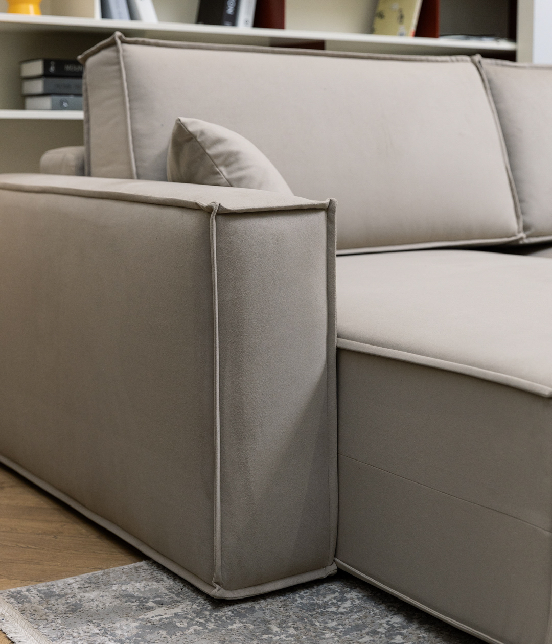 Декоративный кант в виде вывернутых швов — новый тренд в мягкой мебели.