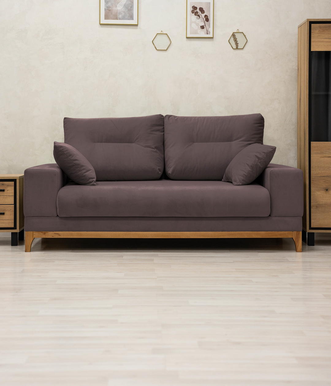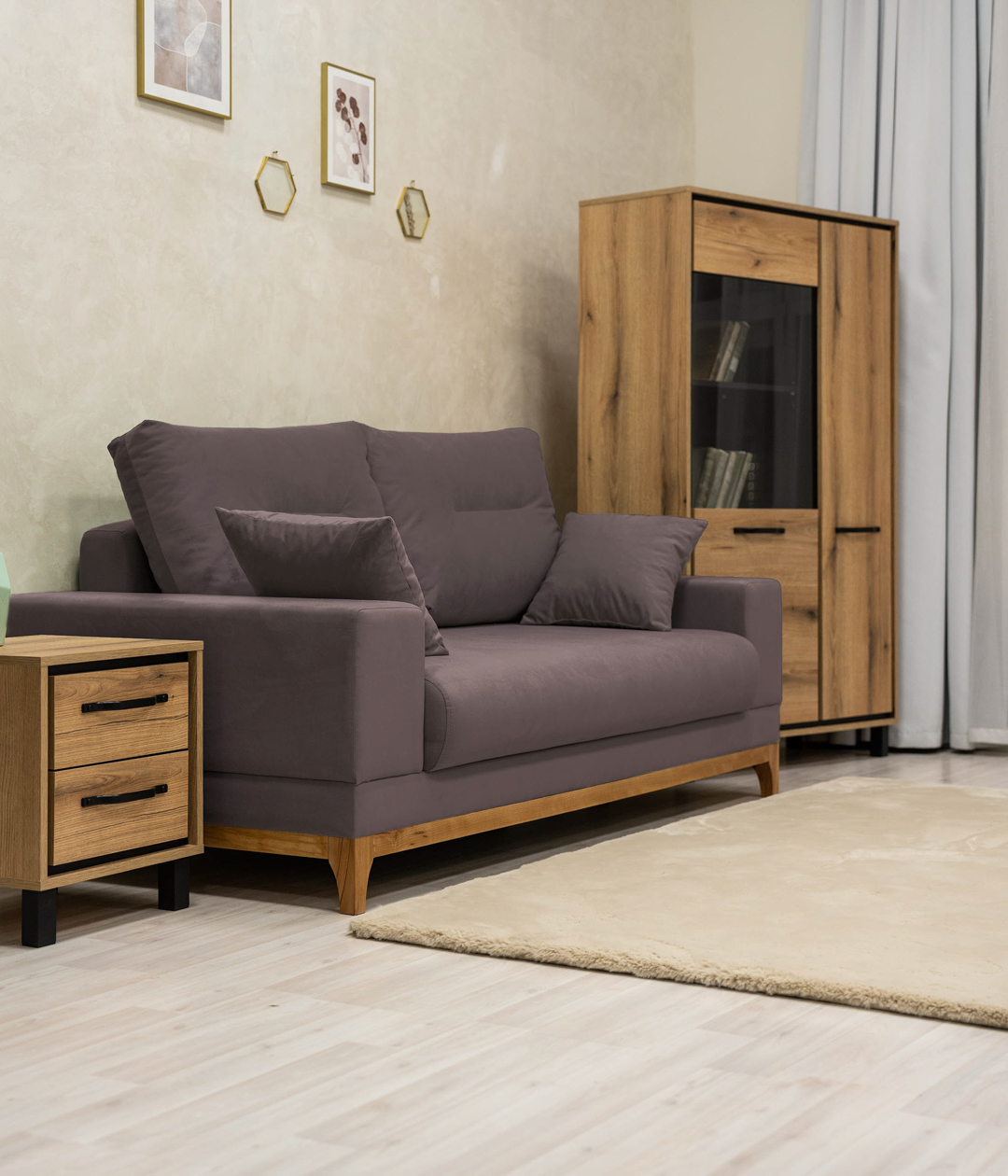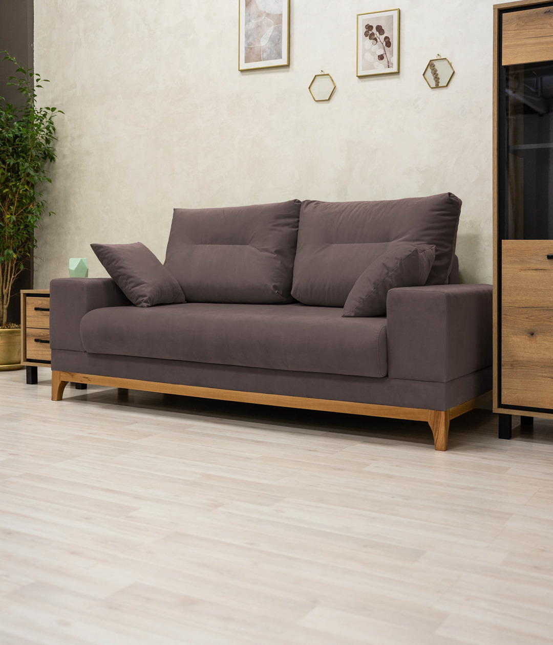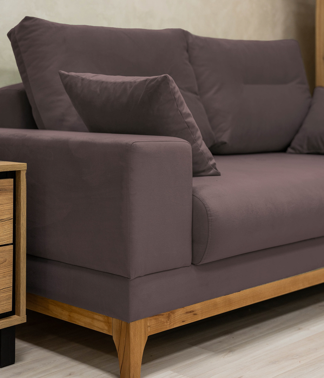 Высокие ножки дивана делают его форму легкой, максимально открывая пространство. А натуральное дерево подчеркивает естественность материалов. Кроме того, такая конструкция упрощает уборку, делая доступным напольное покрытие.