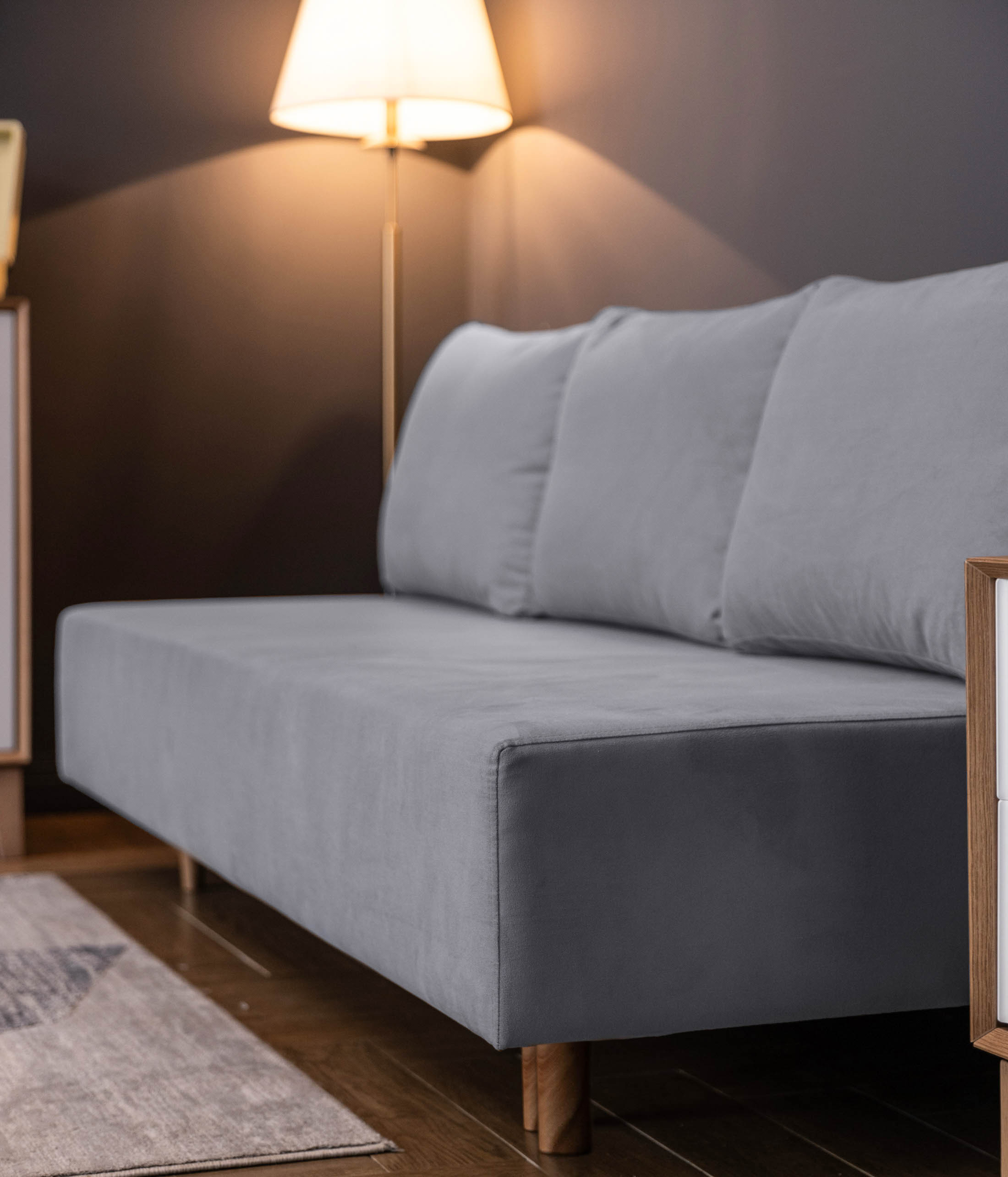 Микровелюр «Велютто» имеет особенно нежную и бархатистую структуру. Ткань устойчива к когтям домашних питомцев и защищает диван от появления затяжек, петель и дыр.