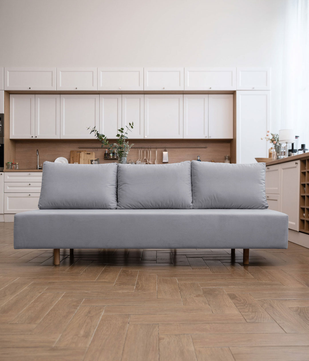 Диван Трентон в скандинавском стиле без подлокотников идеально подходит для тех, кто ценит минимализм и функциональность. Ровное спальное место обеспечивает комфортный отдых, а высокие ножки придают легкость и современный вид. Этот диван станет отличным решением для компактных помещений, сочетая удобство и стиль.