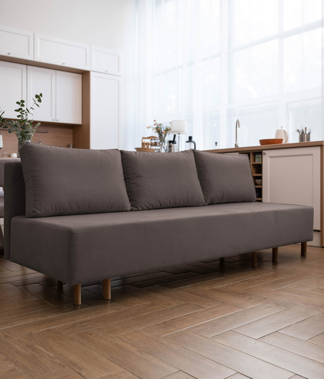 Диван Трентон в скандинавском стиле без подлокотников идеально подходит для тех, кто ценит минимализм и функциональность. Ровное спальное место обеспечивает комфортный отдых, а высокие ножки придают легкость и современный вид. Этот диван станет отличным решением для компактных помещений, сочетая удобство и стиль.