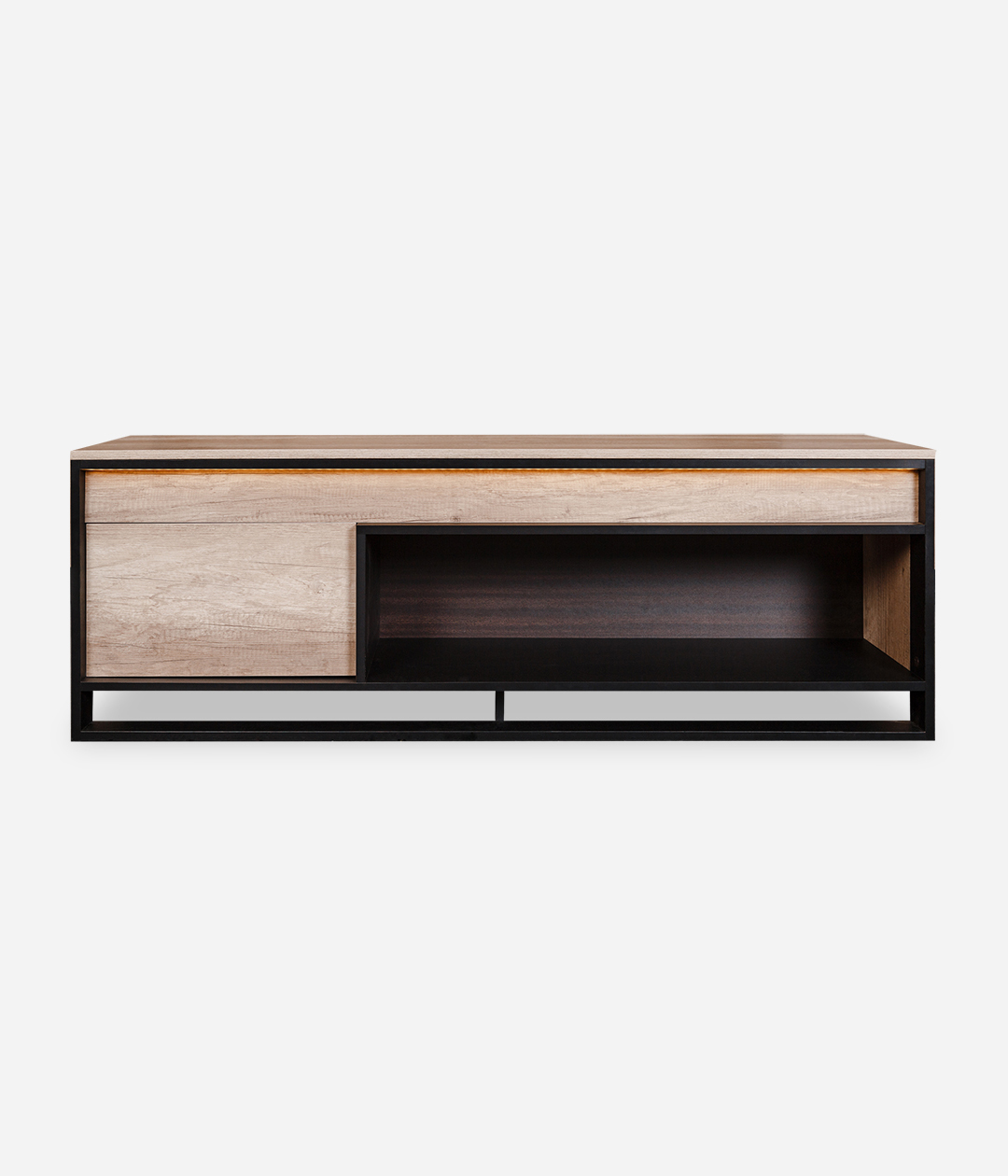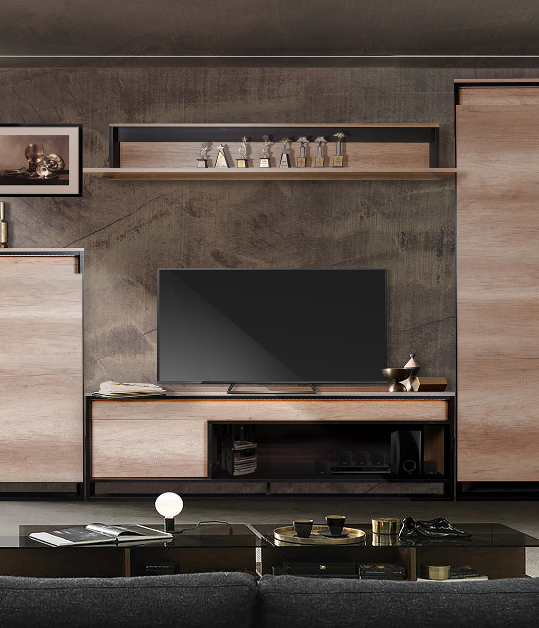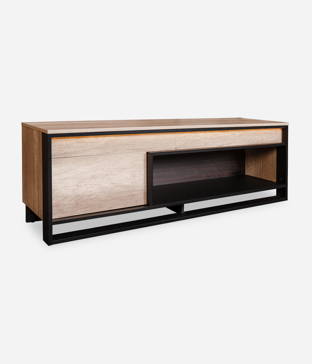 Функциональная и надежная ТВ-тумба Каньон — это залог уютного и аккуратного интерьера. Комбинированное наполнение предусматривает отделения за распашной дверкой, а также открытую полку для ТВ-оборудования. Высокие ножки не перегружают обстановку и позволяют удобно проводить уборку.