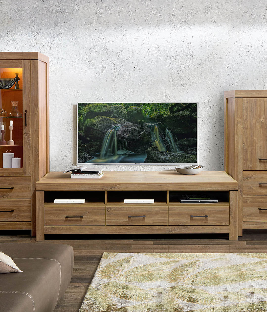 Широкая ТВ-тумба «Гранде» - это стильная модель, которая органично впишется практически в любой интерьер. Её можно поставить не только в составе мебельной композиции, но и как самостоятельный элемент интерьера.