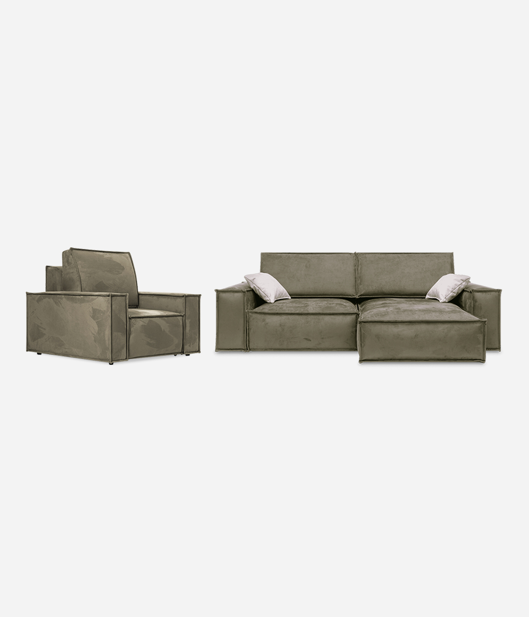 Угловой диван Монклова мини и кресло Ронсе Нубук Balance цвета хаки