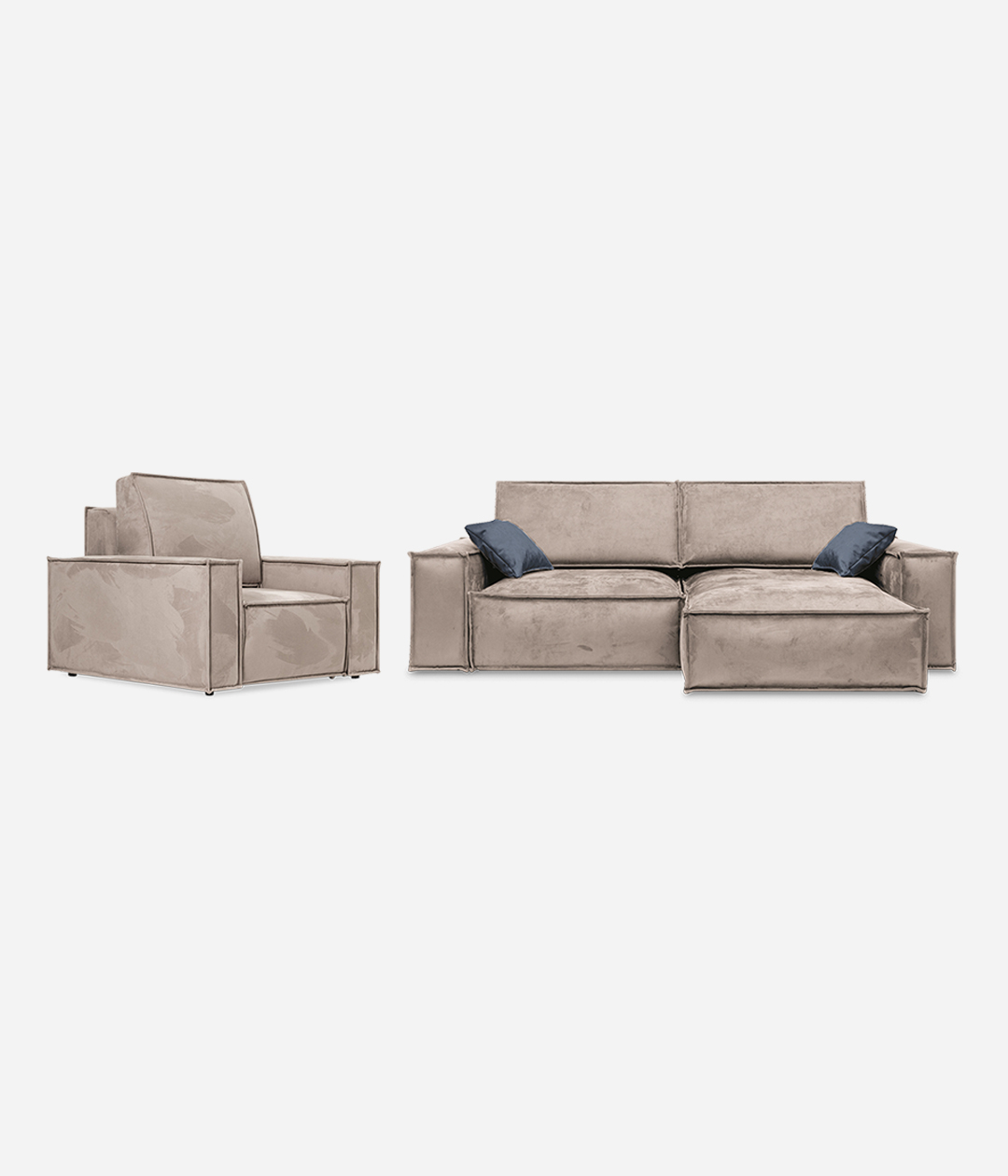 Угловой диван Монклова мини и кресло Ронсе Темно-бежевый нубук Balance