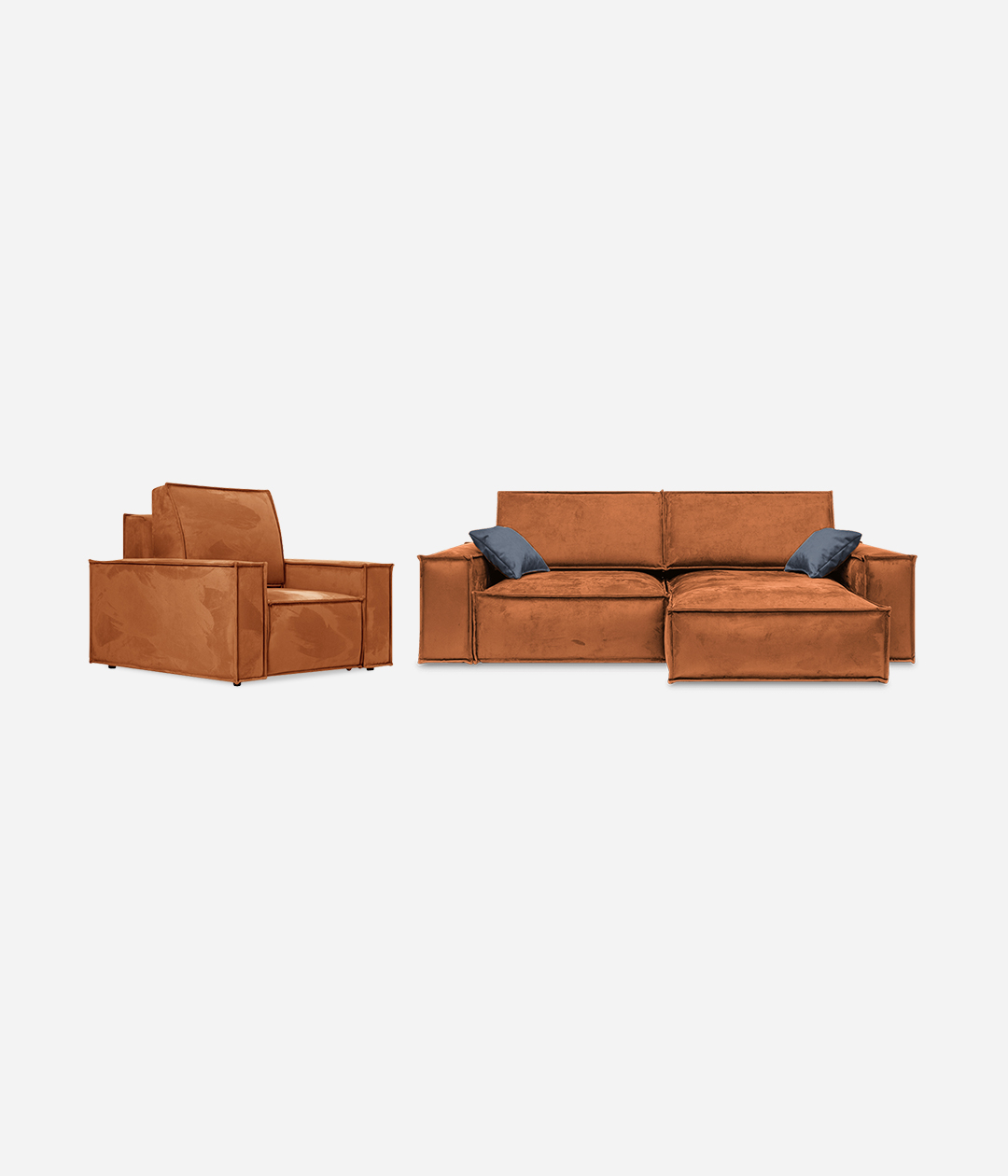 Угловой диван Монклова мини и кресло Ронсе Терракотовый нубук Balance