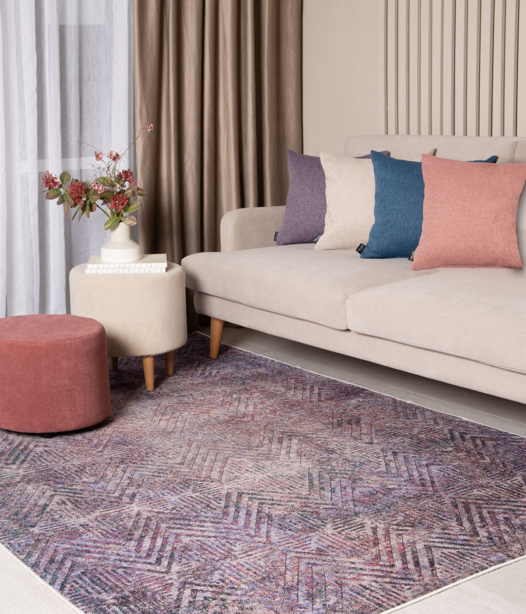 Яркий и сочный дизайн ковра UNGARO PINTO сочетает в себе два основных тренда: динамичную геометрию и абстракцию. Насыщенные цвета теплой палитры прекрасно сочетаются с приглушенным фоновым зигзагом. Изображение на шенилловый ковер наносится с помощью термопечати под воздействие высоких температур, что гарантирует долговечность и сохранение насыщенности оттенков. Изделие произведено из переработанного сырья, что отвечает концепции осознанного потребления. Ковер лоялен к домашним животным и имеет водоотталкивающую пропитку. Все это делает его очень практичным.