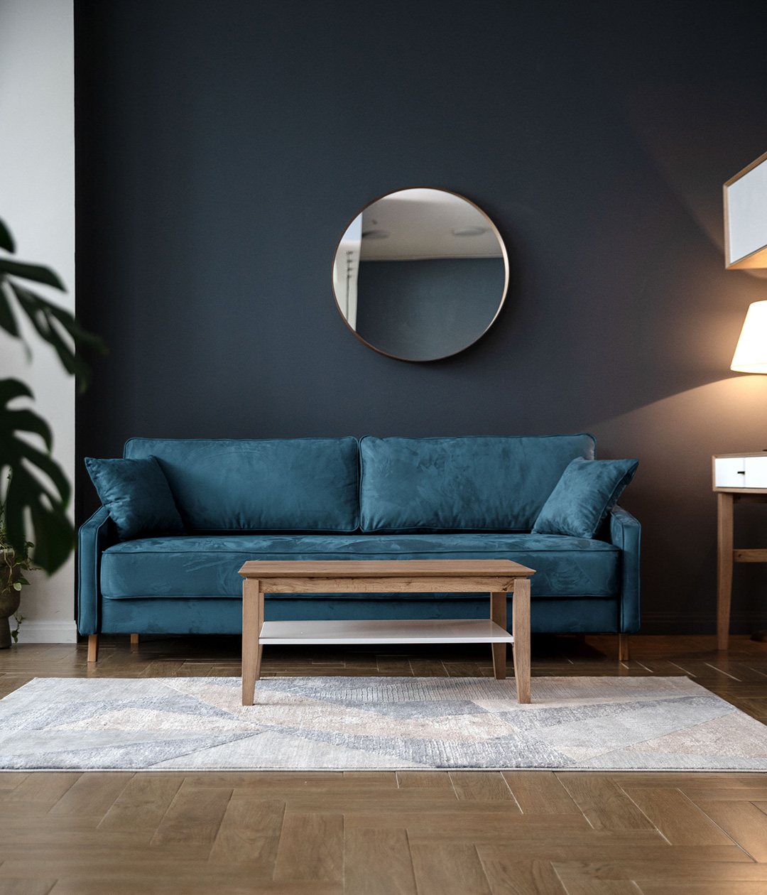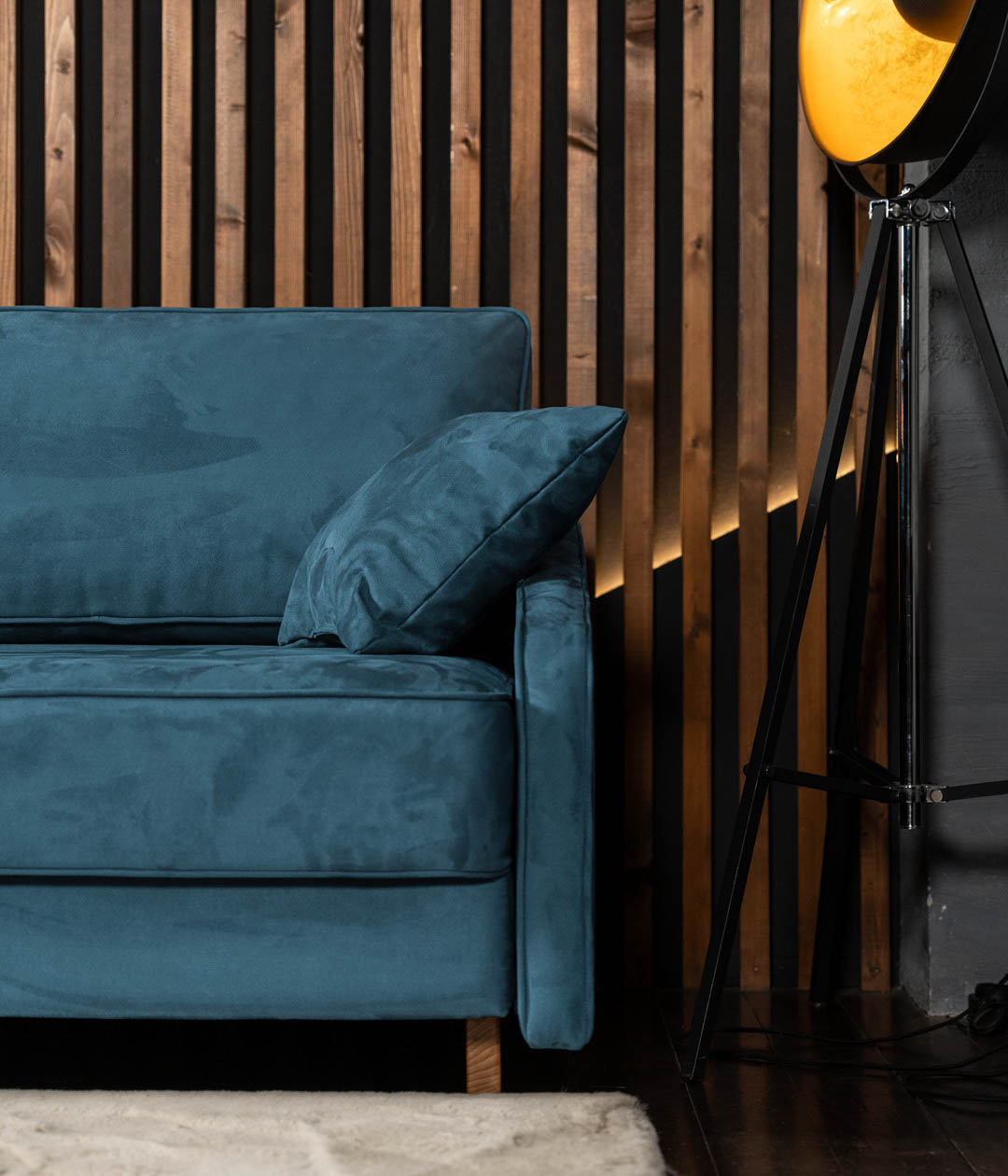 Высокие ножки дивана делают его форму легкой, максимально открывая пространство. А натуральное дерево подчеркивает естественность материалов. Кроме того, такая конструкция упрощает уборку, делая доступным напольное покрытие.