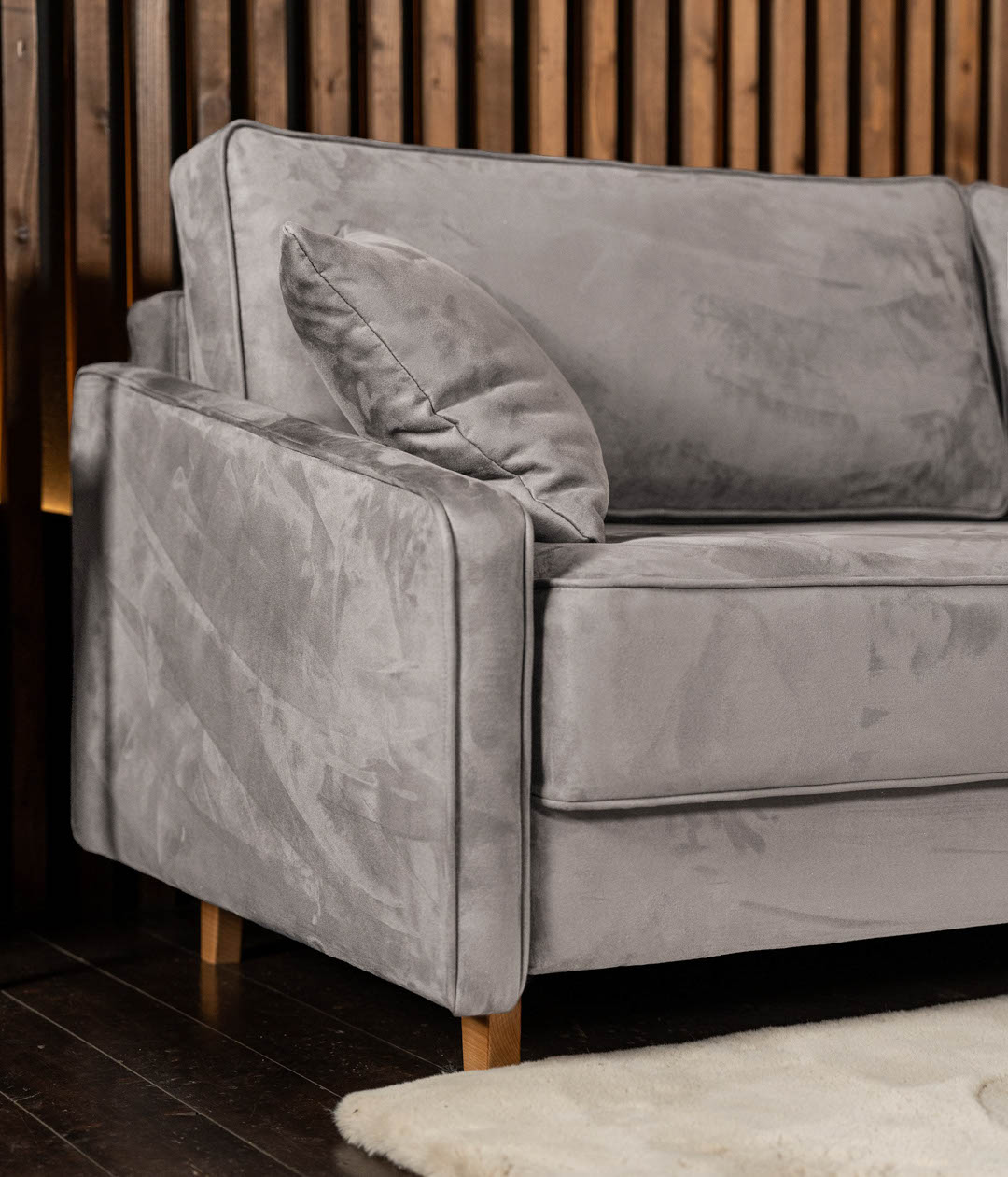 Стильный и лаконичный диван Веласко создан, чтобы охранять уют, спокойствие и гармонию вашего дома. Изюминка модели - наполнитель с эффектом памяти и обивка из искусственного нубука высшей категории. Высокие ножки из натурального дерева подчеркивают скандинавский дизайн, добавляя легкости и элегантности. Этот диван идеально подходит для современного интерьера, создавая уютную атмосферу и обеспечивая комфортный отдых.
