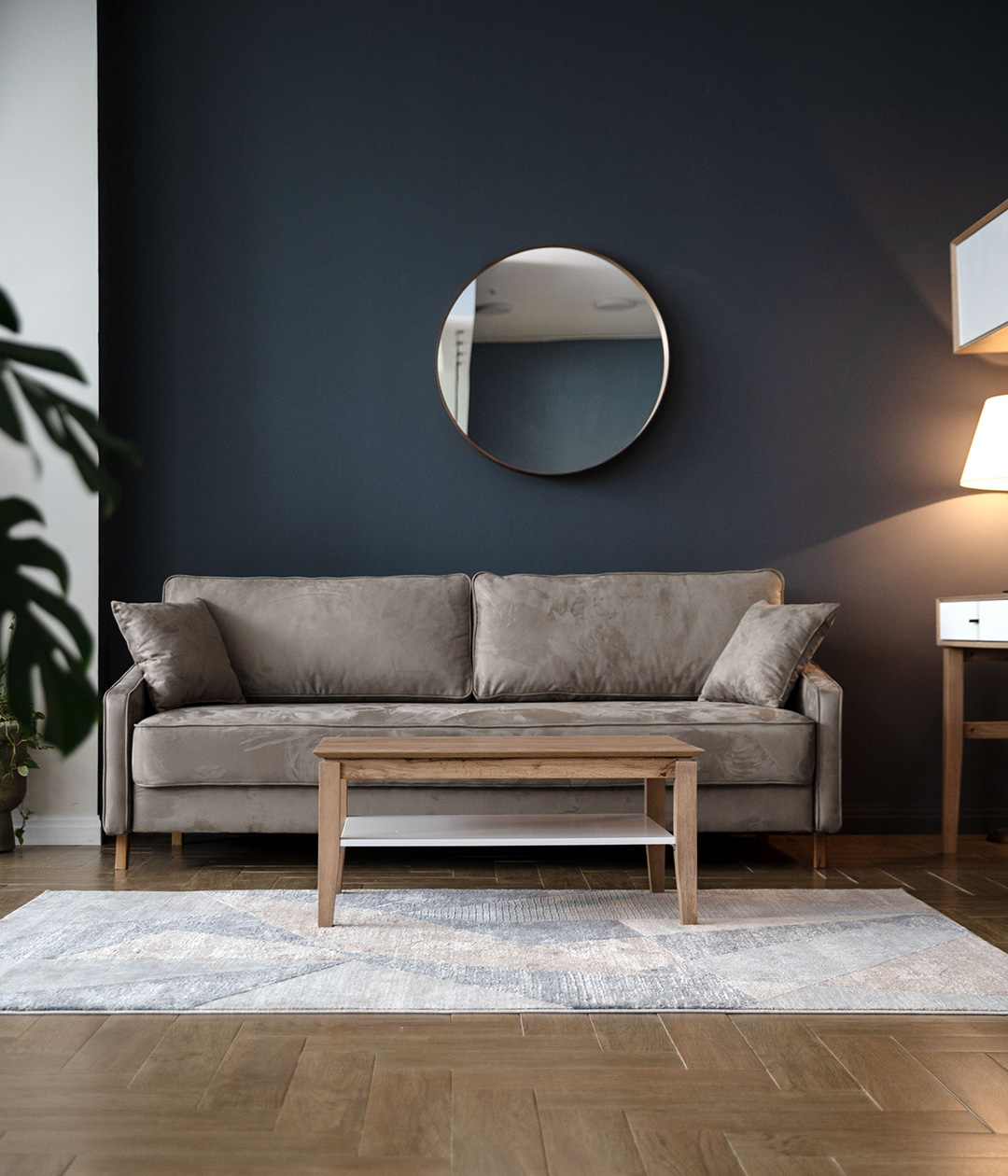Высокие ножки дивана делают его форму легкой, максимально открывая пространство. А натуральное дерево подчеркивает естественность материалов. Кроме того, такая конструкция упрощает уборку, делая доступным напольное покрытие.