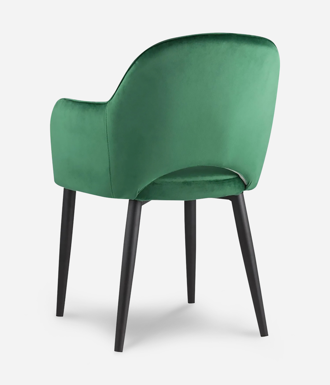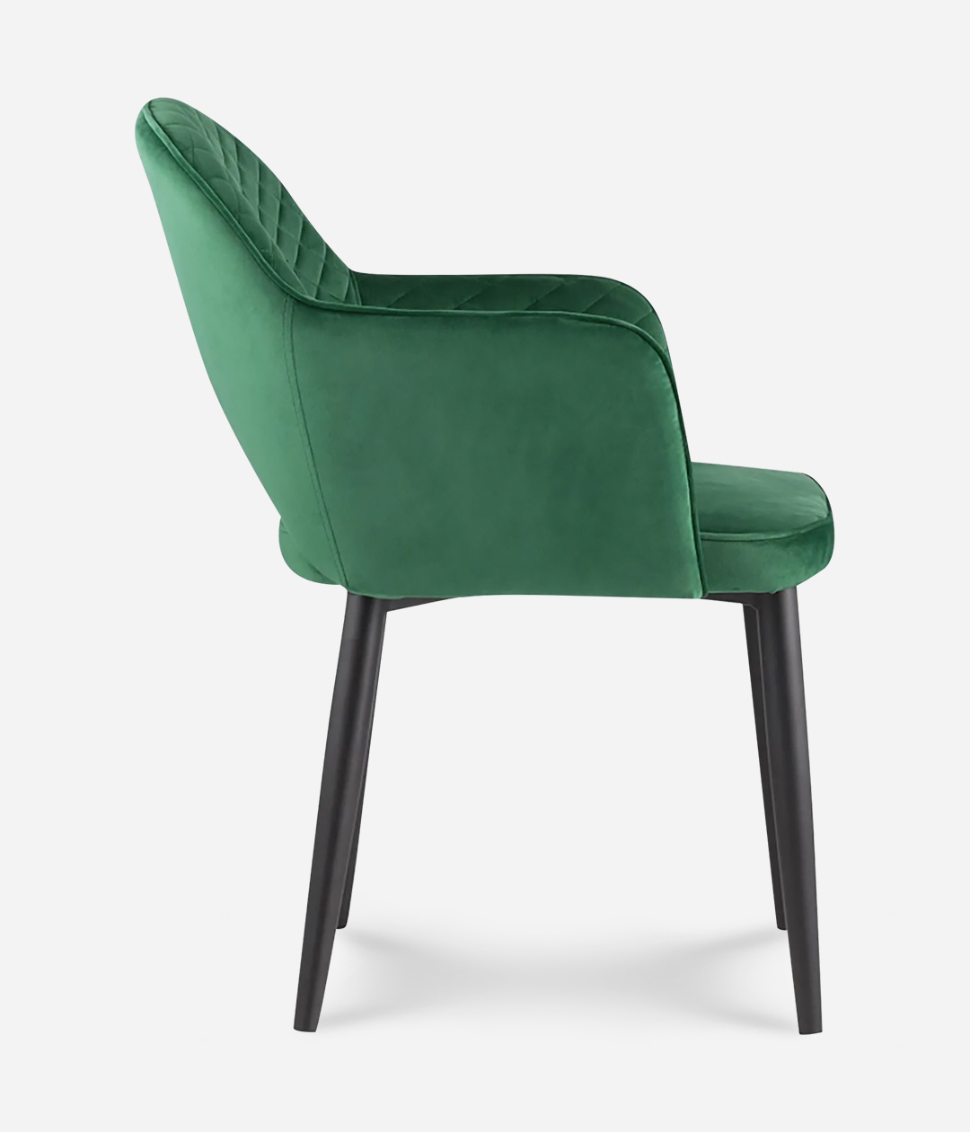 Интересное сочетание современного дизайна и вневременной мебельной классики. Обивка из мебельной велюровой ткани, мягкой, бархатистой и очень приятной на ощупь. Мебельная ткань велюр - очень практичная и устойчивая к истиранию. Ножки: металл, черного цвета.
