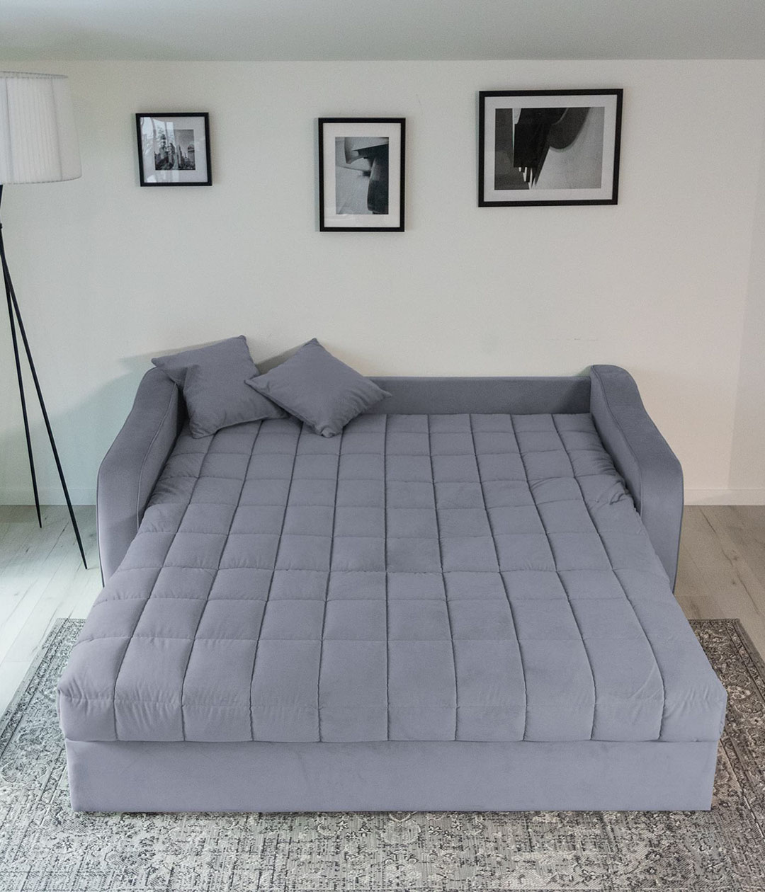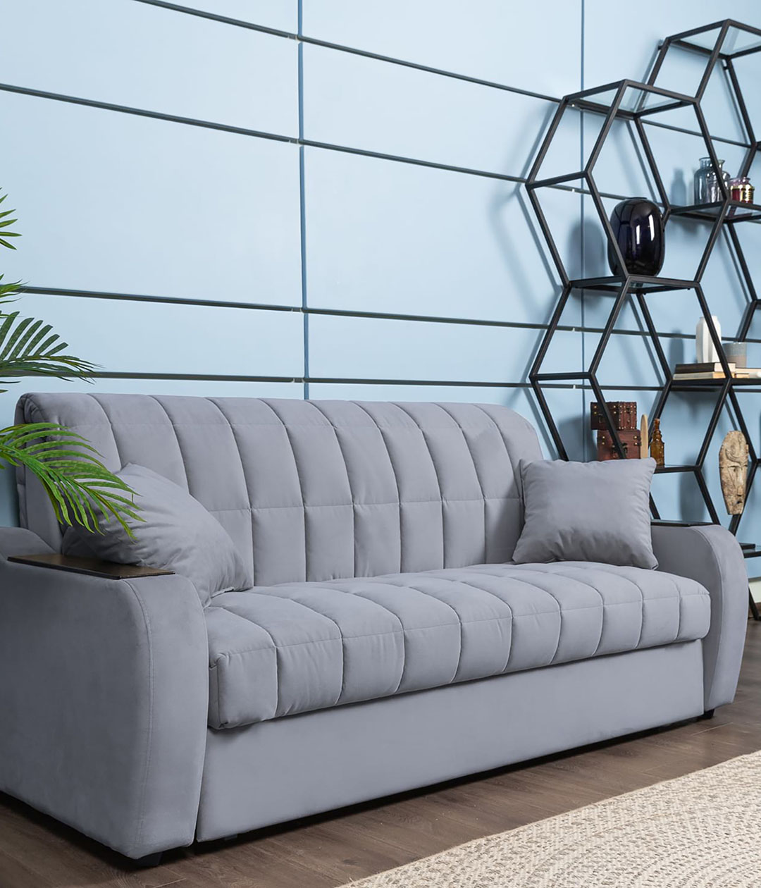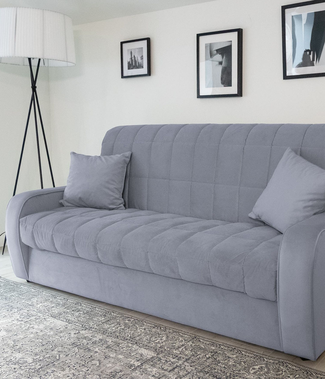 Диван-аккордеон Вентура — отличный выбор для ежедневного использования. Он легко раскладывается в ровное спальное место, обеспечивающее комфортный сон и отдых. Ткань обивки имеет нежную и бархатистую структуру, но достаточно практична и проста в уходе. Классический стиль делает диван универсальным для любого интерьера, сочетая в себе удобство и элегантность.