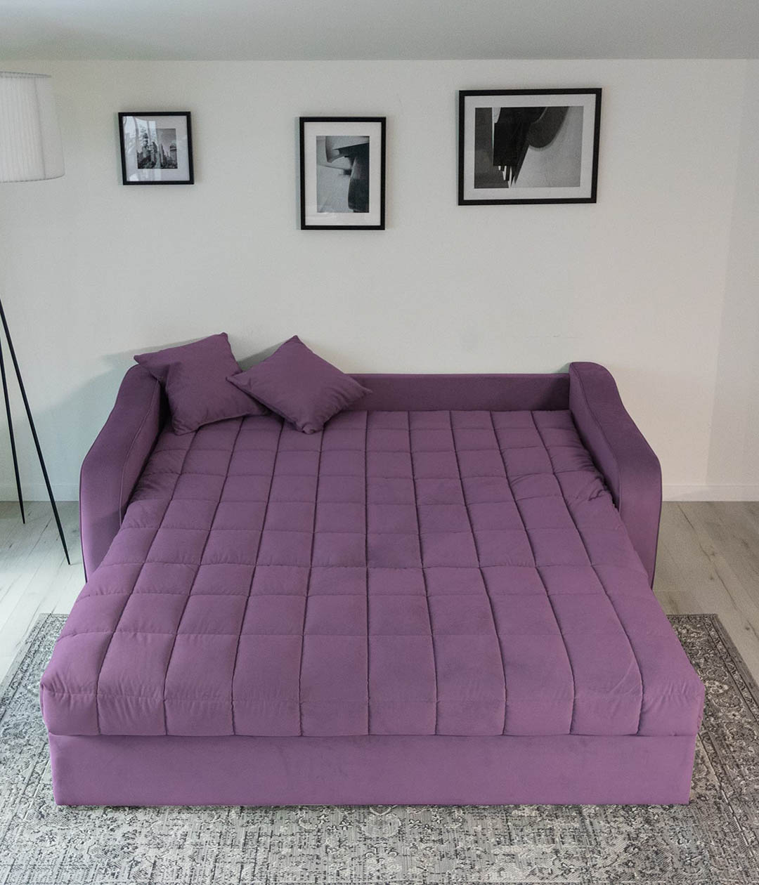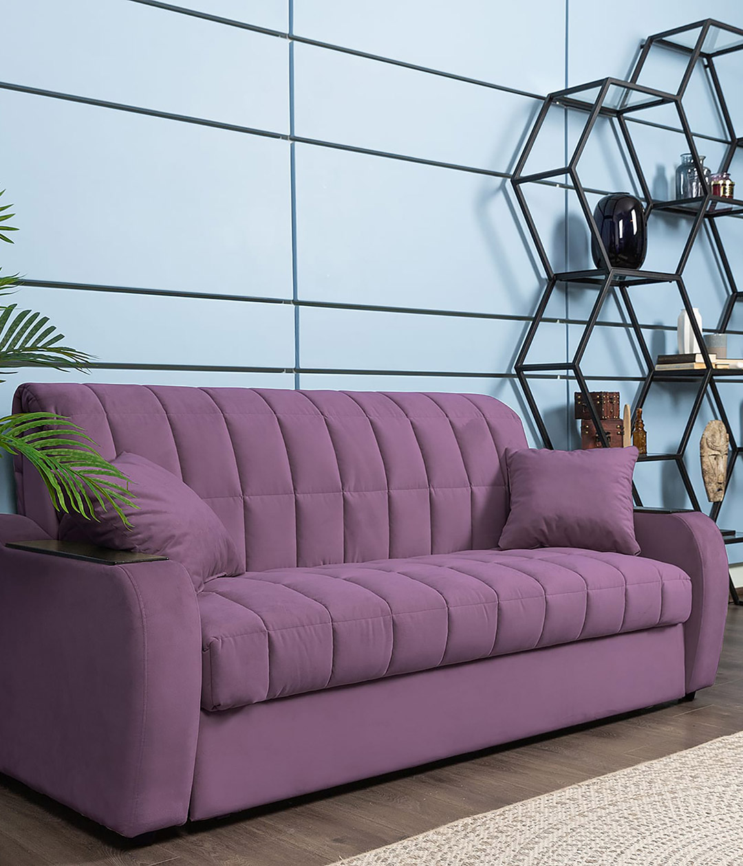 Диван-аккордеон Вентура — отличный выбор для ежедневного использования. Он легко раскладывается в ровное спальное место, обеспечивающее комфортный сон и отдых. Ткань обивки имеет нежную и бархатистую структуру, но достаточно практична и проста в уходе. Классический стиль делает диван универсальным для любого интерьера, сочетая в себе удобство и элегантность.