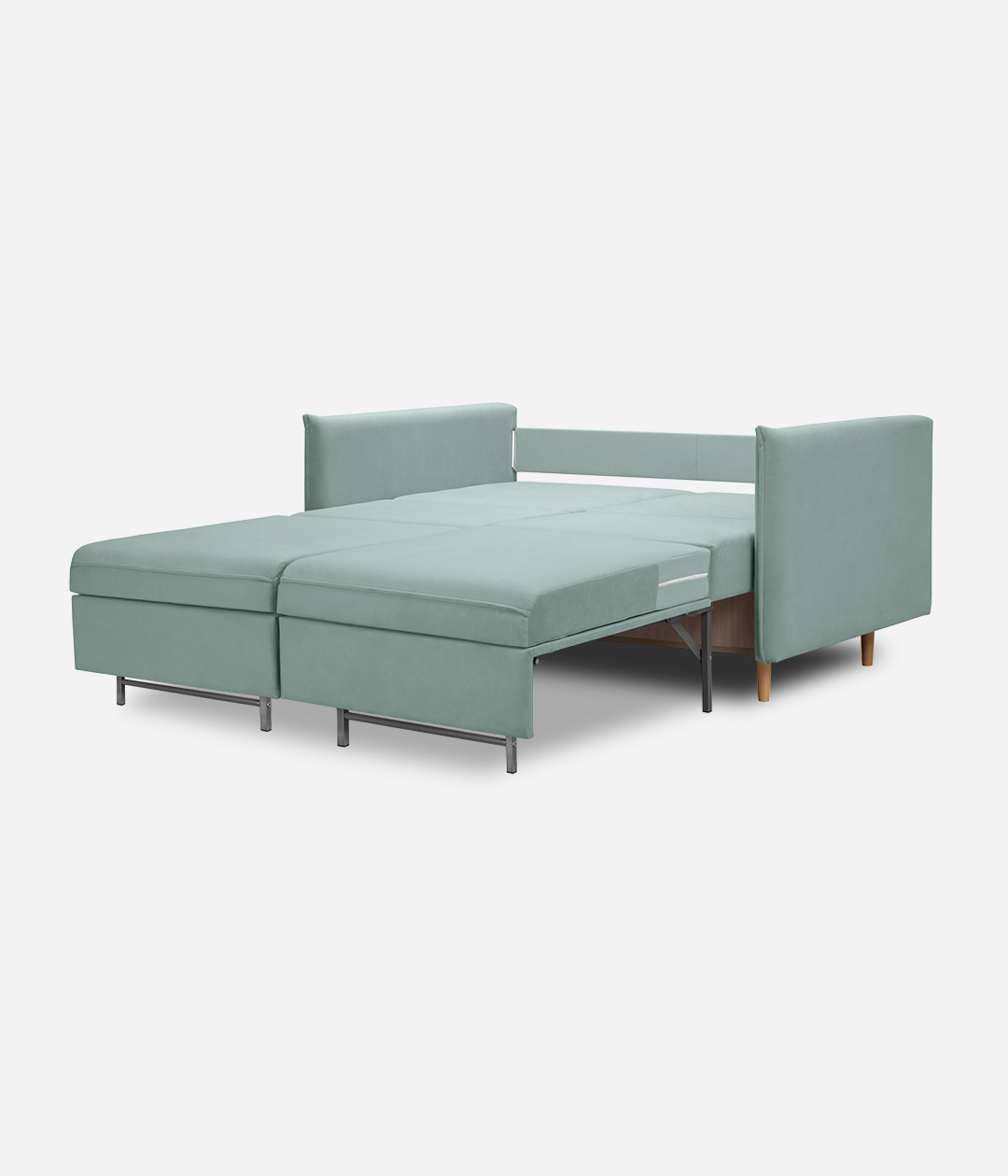 Диван раскладывается секционно. Выдвинув одну сторону секции, диван можно сделать угловым.