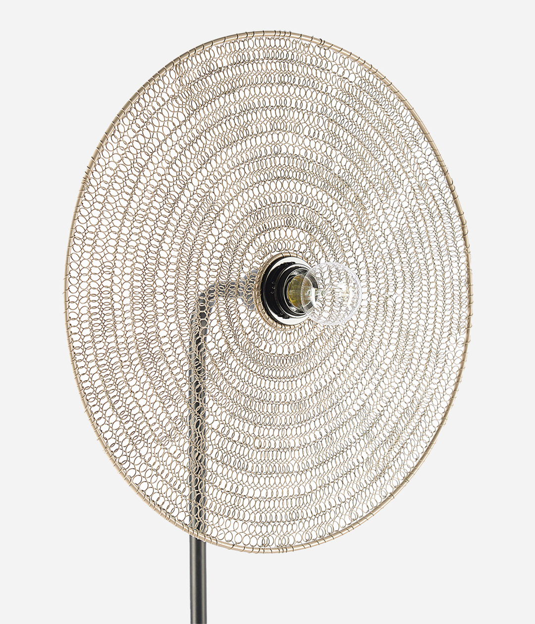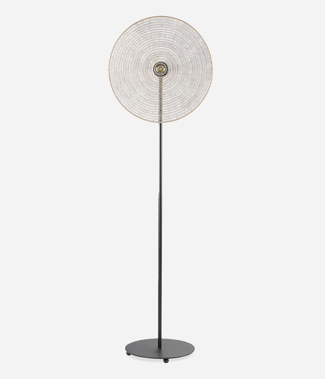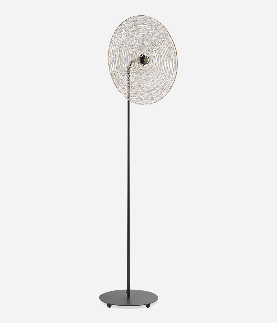 Торшер Vinger – прекрасный способ добавить интерьеру характер и индивидуальность. Напольный светильник привлекает качественным исполнением и интересным дизайном. Его плафон из металлической сетки рисует на стенах и потолке живописные тени, создавая в помещении волшебную атмосферу.