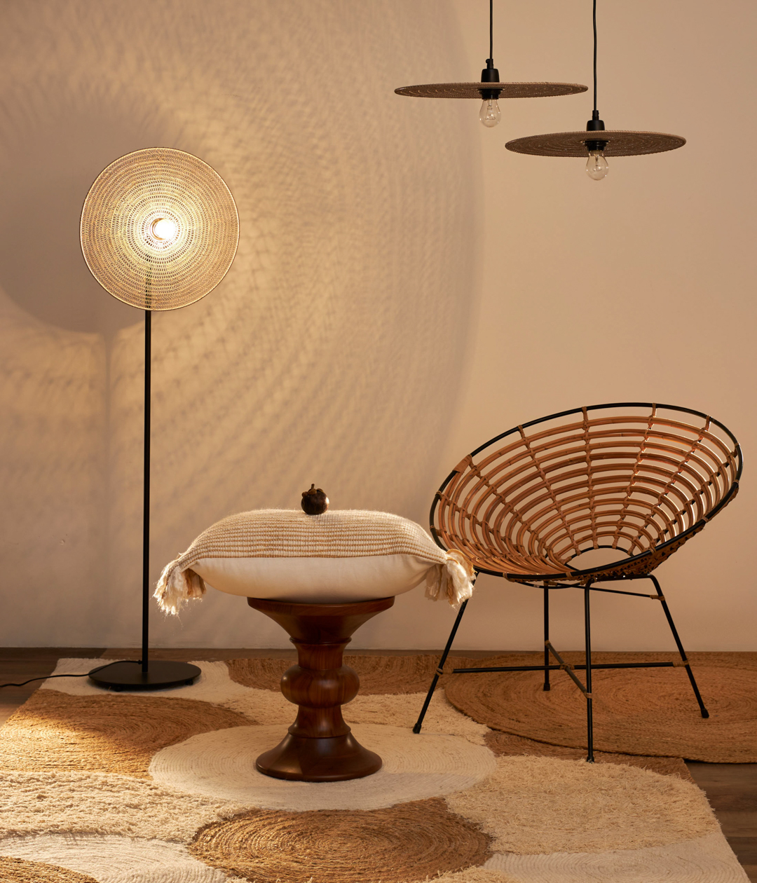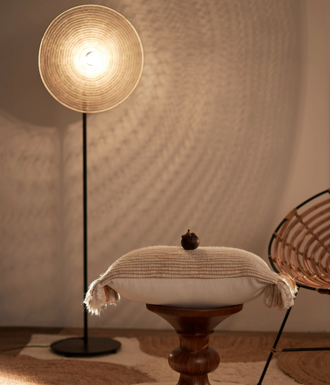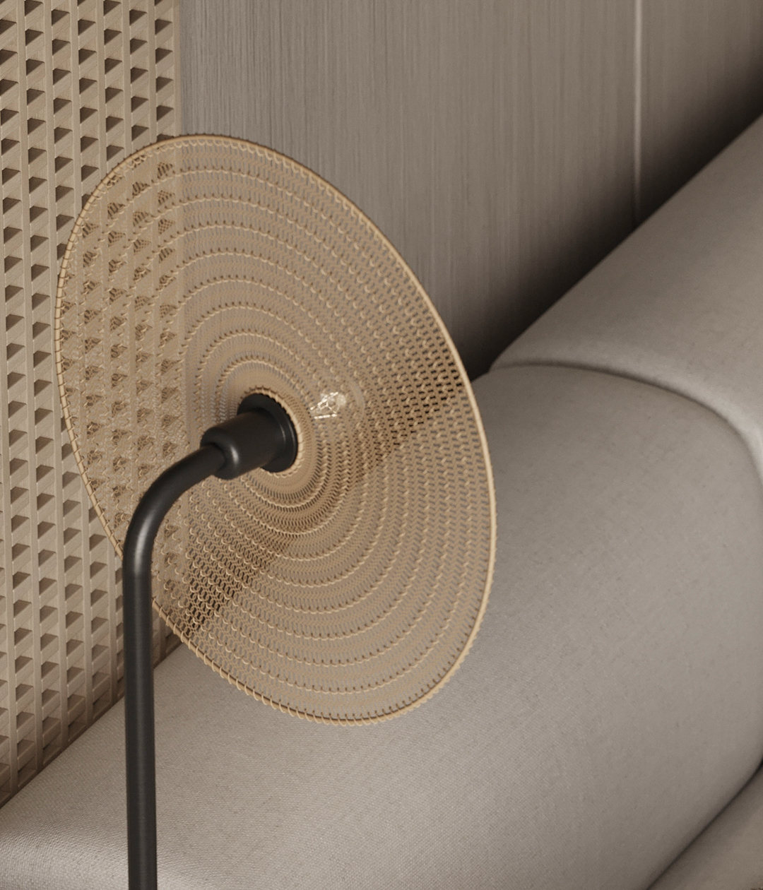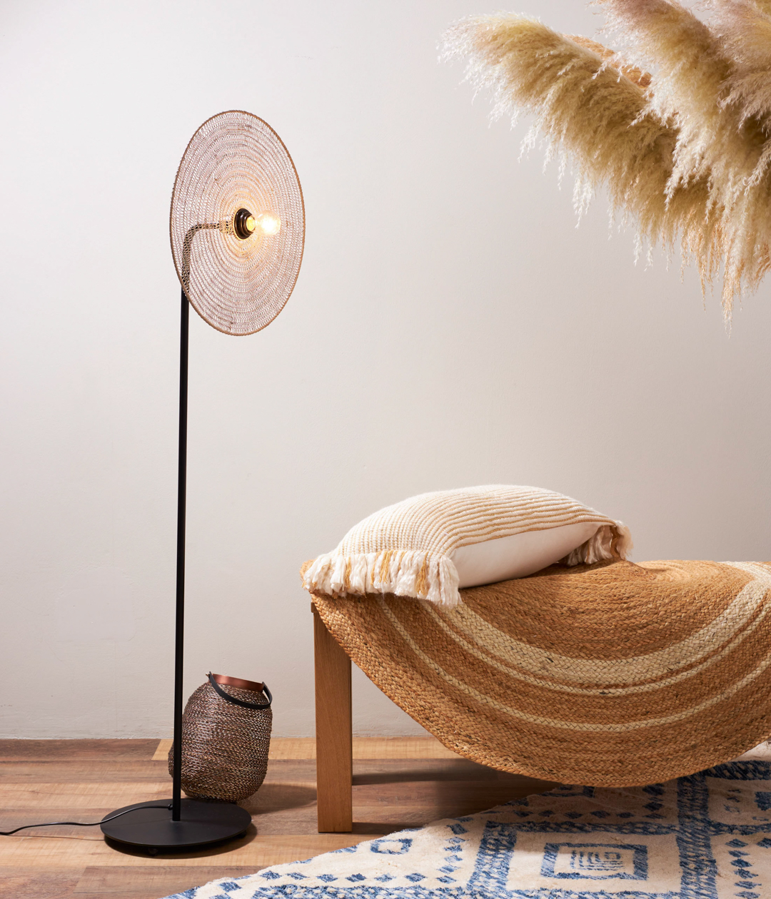 Торшер Vinger – прекрасный способ добавить интерьеру характер и индивидуальность. Напольный светильник привлекает качественным исполнением и интересным дизайном. Его плафон из металлической сетки рисует на стенах и потолке живописные тени, создавая в помещении волшебную атмосферу.