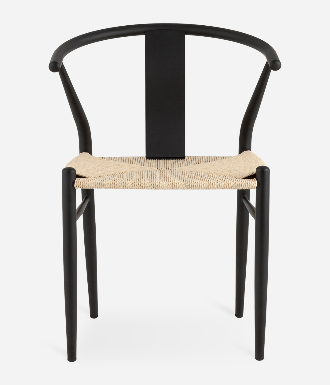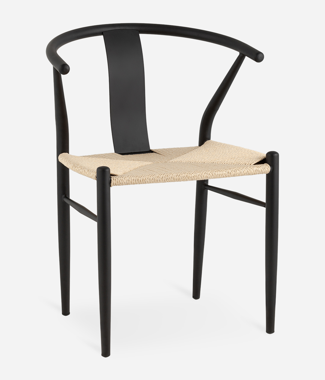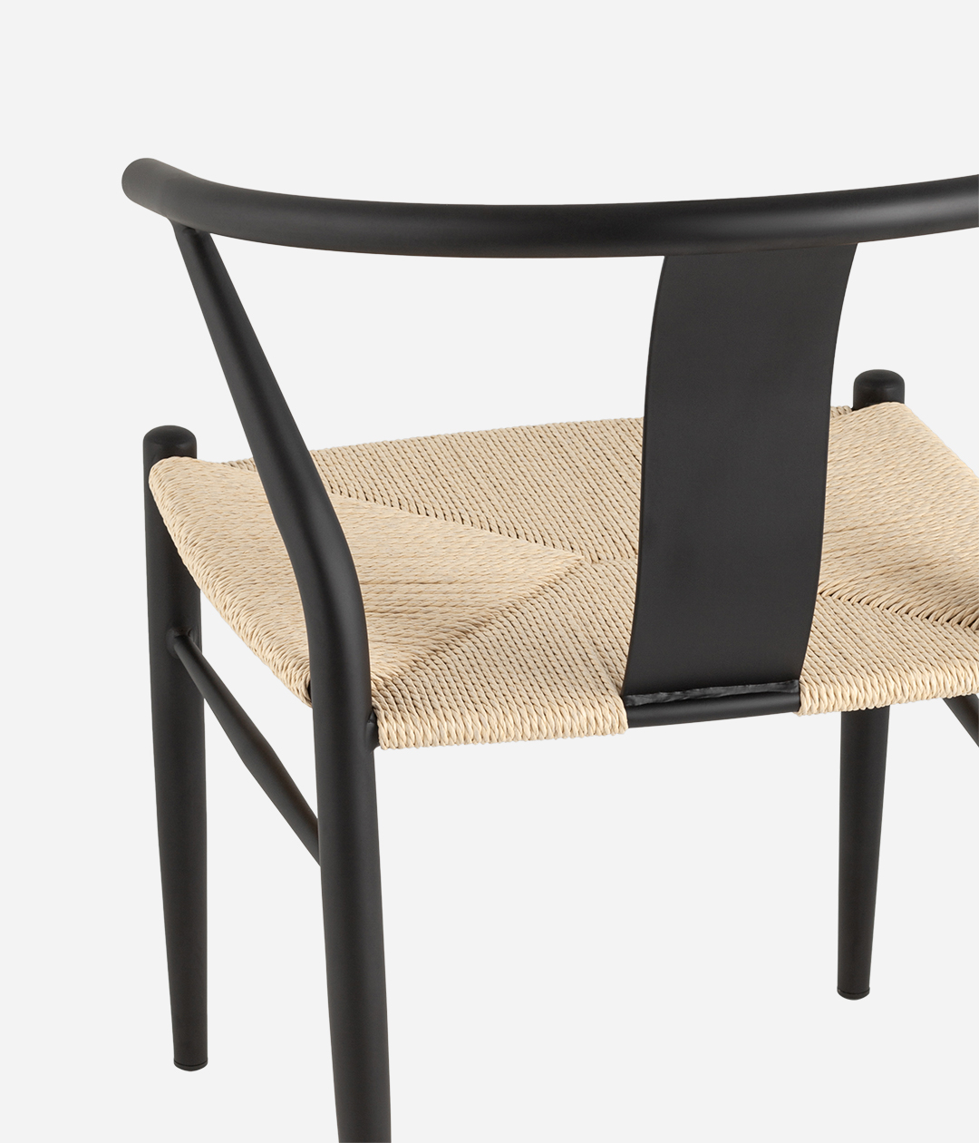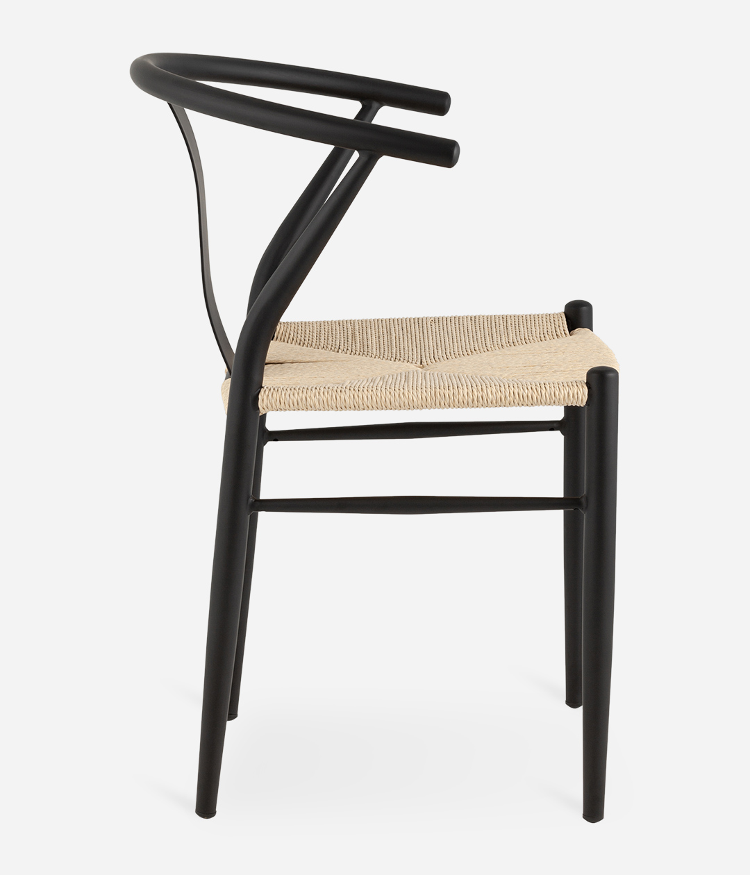 Обеденный стул Wishbone Style с металлическим основанием и сидением из джута - натурального текстильного волокна. Это отличный выбор для тех, кто заботится о здоровье и комфорте своих гостей.