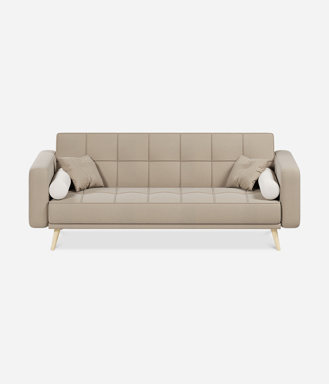 Диван-кровать «Алавус» с декоративными подушками в комплекте идеально подойдет для гостиной, спальни, детской или подростковой комнаты. Лаконичная современная модель на высоких ножках будет гармонировать со скандинавским интерьером или обстановкой в стиле минимализм.