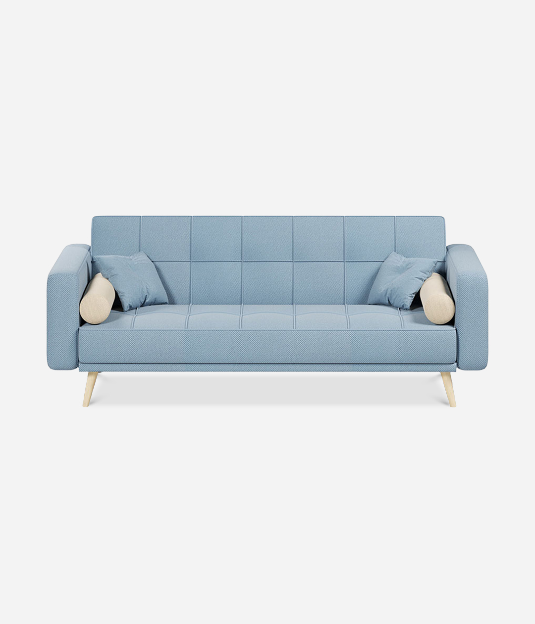 Диван-кровать «Алавус» с декоративными подушками в комплекте идеально подойдет для гостиной, спальни, детской или подростковой комнаты. Лаконичная современная модель на высоких ножках будет гармонировать со скандинавским интерьером или обстановкой в стиле минимализм.