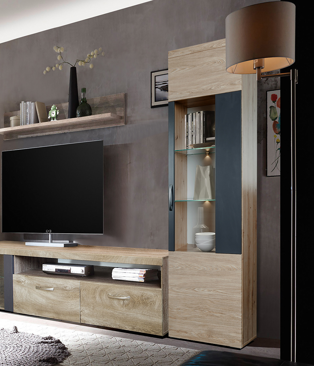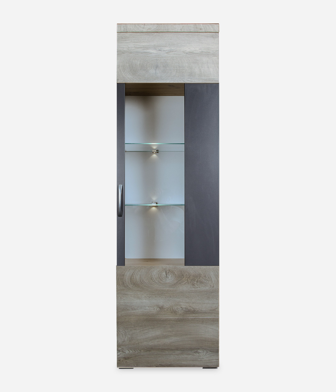 Шкаф-витрина Амаранти станет настоящим украшением современного интерьера. Фасад со вставкой из закаленного стекла откроет обзор на содержимое, защищая его от пыли и влаги.