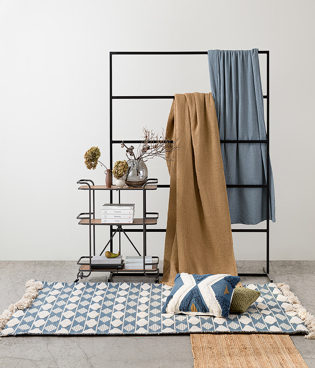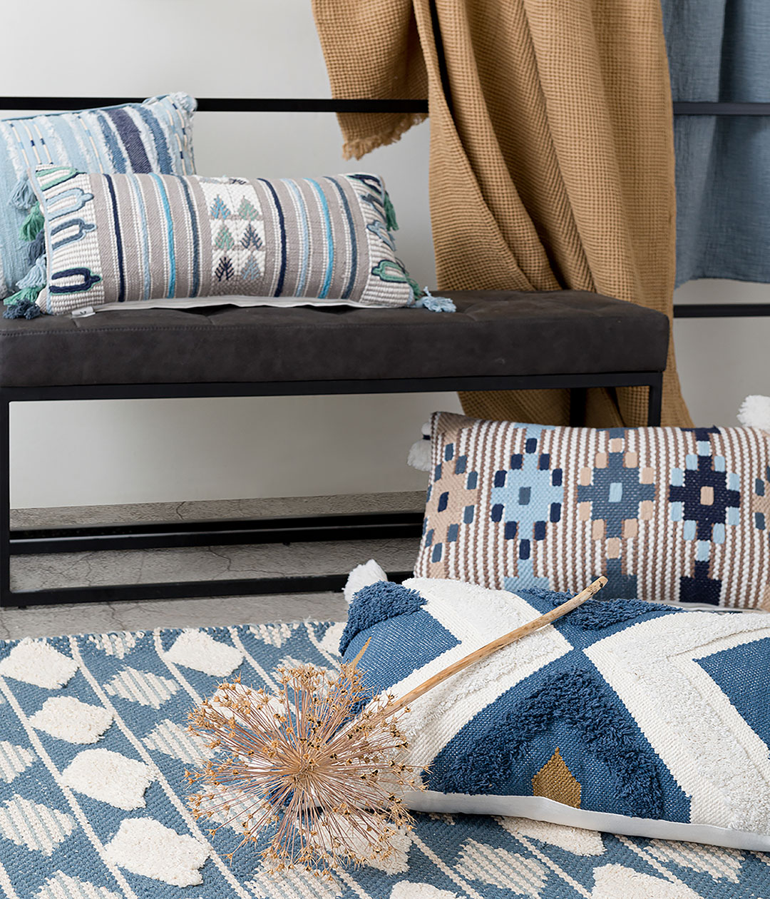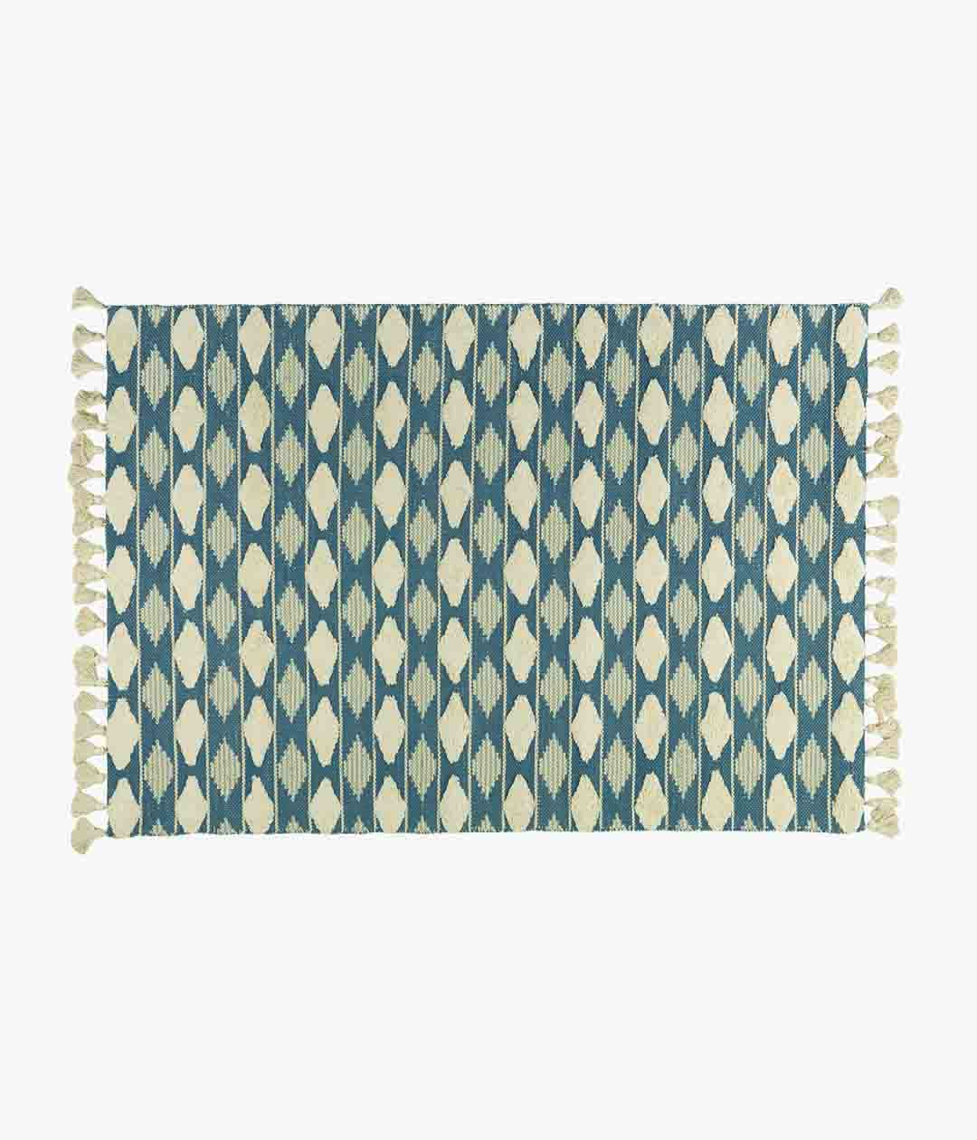 Ковер из хлопка синего цвета Argyle из коллекции Ethnic украшен контрастным геометрическим принтом и пышными кисточками по бокам. Модель органично впишется в скандинавский стиль или минимализм. Ковер можно повесить на стену в качестве арт-объекта, поместить на пол возле дивана или кровати. Изделие на подкладке, выполнено из прочного высококачественного хлопка, край с изнаночной стороны укреплен киперной лентой, исключающей деформацию.