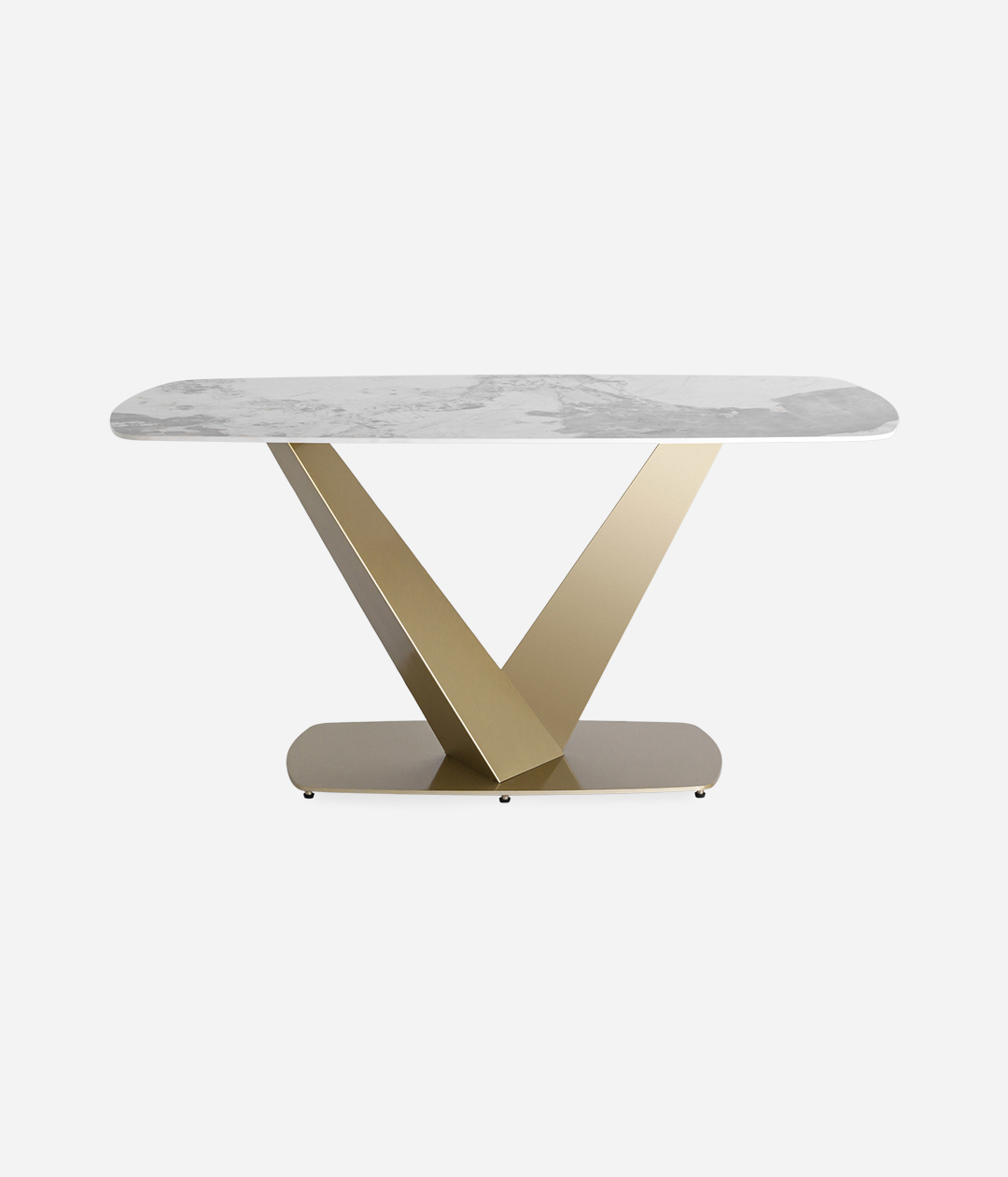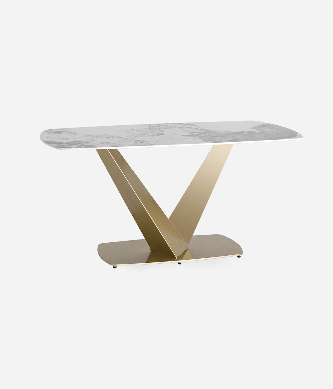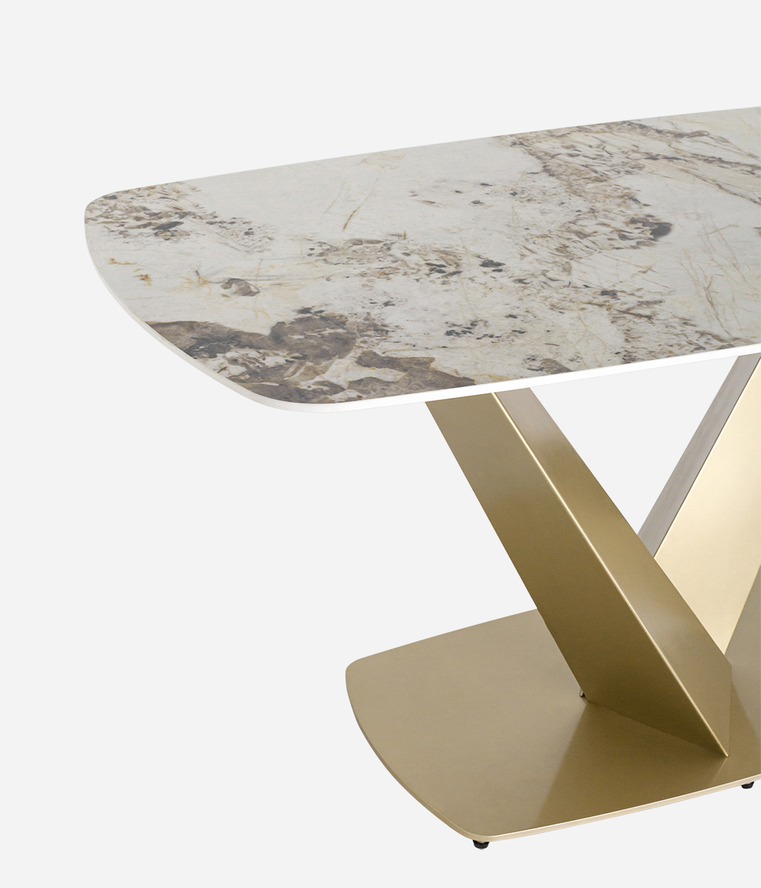 Обеденный стол «Аврора» имеет привлекательную V-образную форму основания. Такая форма не только выглядит эффектно, но и позволяет с комфортом разместить гостей за столом.