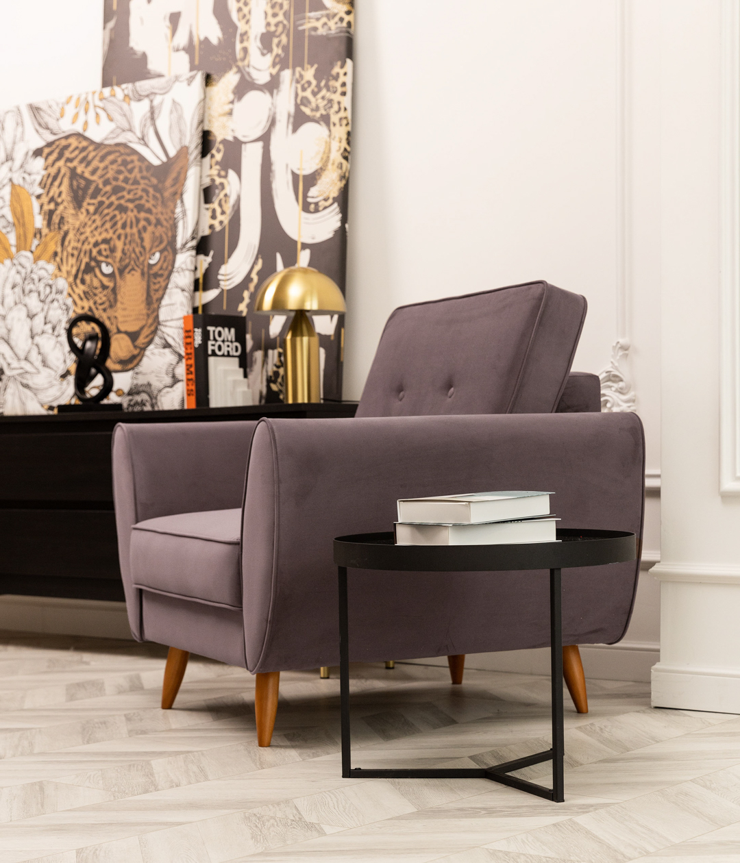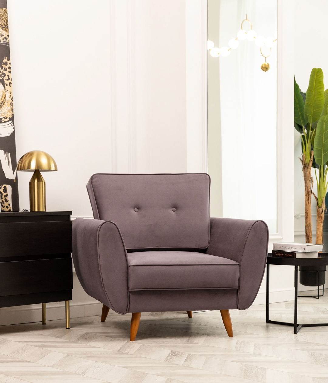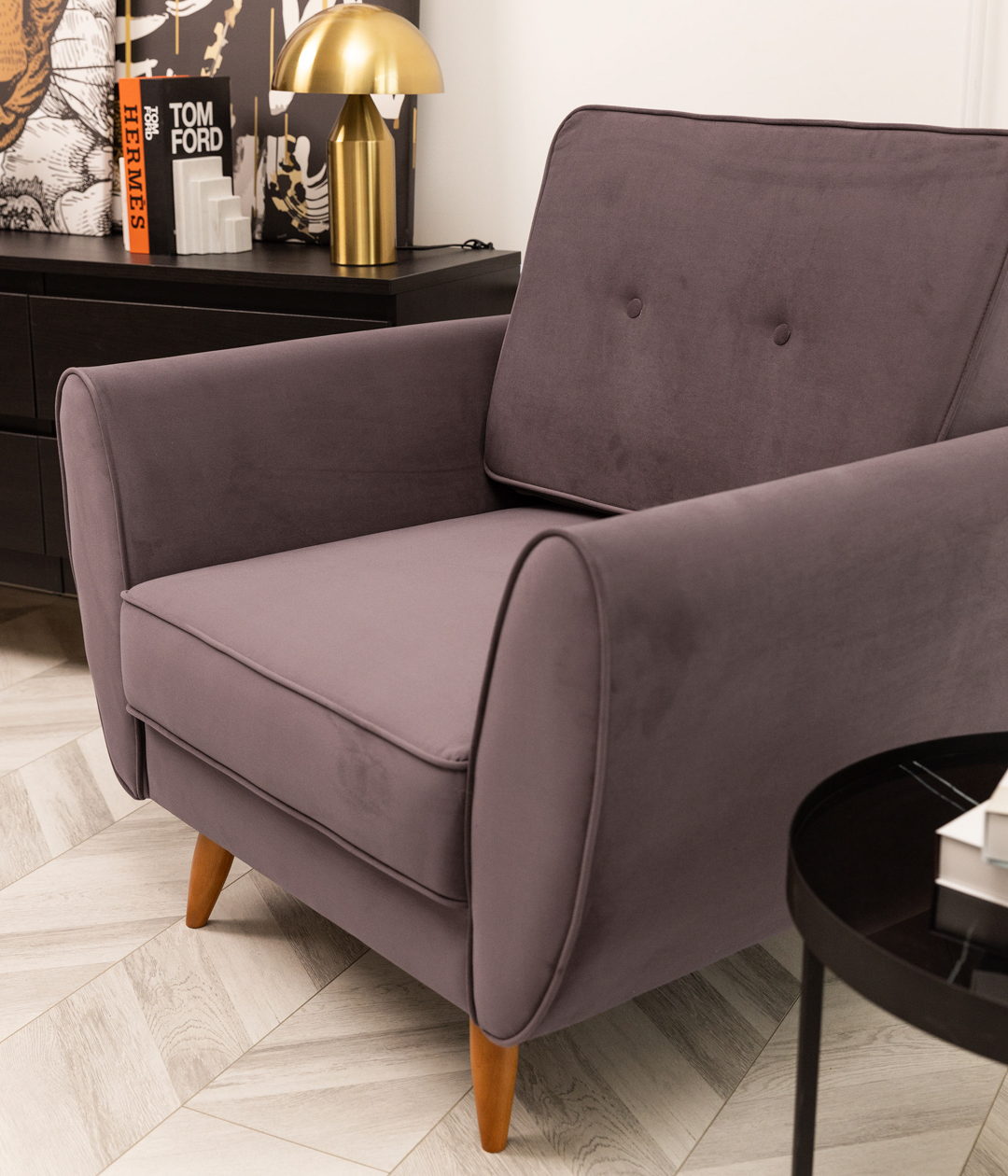 Кресло Бакай станет стильным акцентом вашего интерьера. Оригинальные подлокотники, расположенные по диагонали, придают изделию неповторимый вид, подчёркивая красоту природных материалов и легкость конструкции. Широкая палитра расцветок позволяет легко подобрать вариант под любой дизайн. Практичная обивка из велюра приятна на ощупь и удобна в уходе.