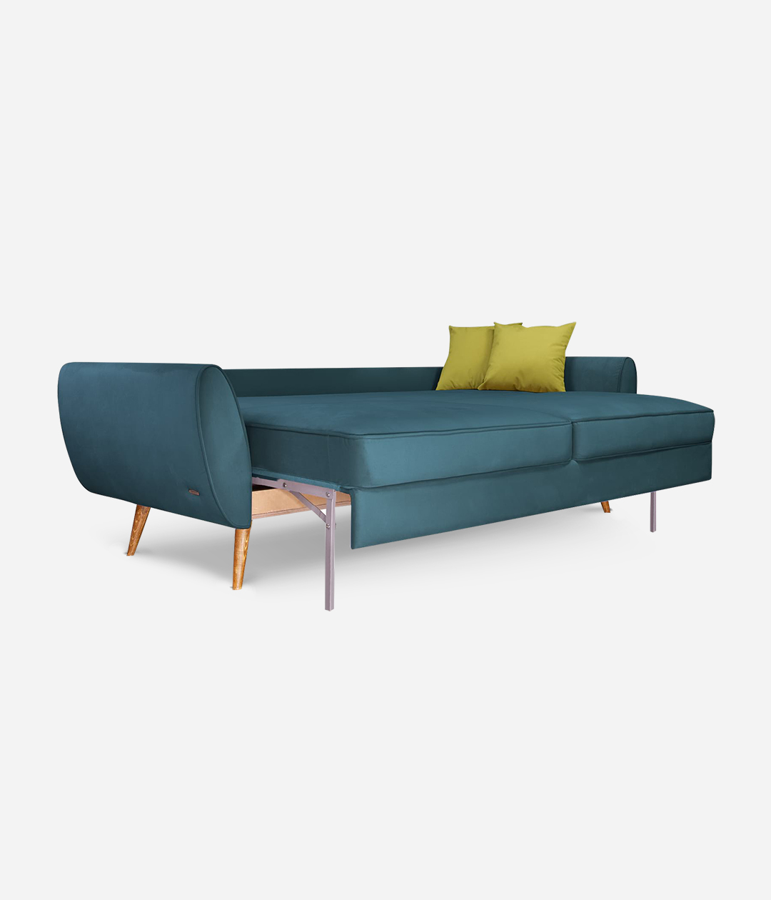 Диван Бакай станет стильным акцентом вашего интерьера. Оригинальные подлокотники, расположенные по диагонали, придают изделию неповторимый вид, подчёркивая красоту природных материалов и легкость конструкции. Широкая палитра расцветок позволяет легко подобрать вариант под любой дизайн. Практичная обивка из велюра приятна на ощупь и удобна в уходе. Диван легко трансформируется в комфортное спальное место, совмещая стиль и функциональность.
