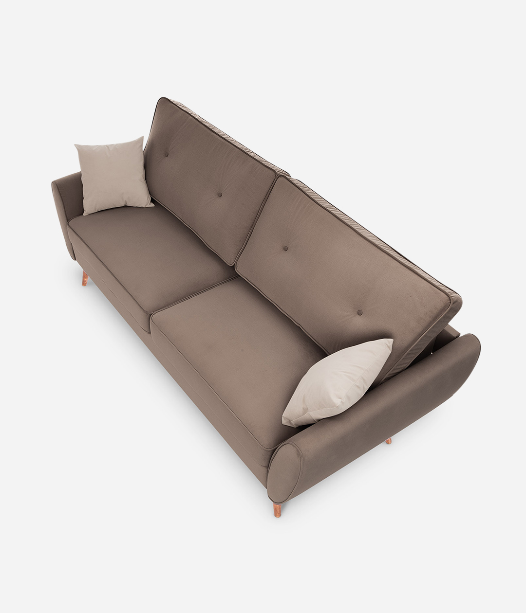 Диван Бакай станет стильным акцентом вашего интерьера. Оригинальные подлокотники, расположенные по диагонали, придают изделию неповторимый вид, подчёркивая красоту природных материалов и легкость конструкции. Широкая палитра расцветок позволяет легко подобрать вариант под любой дизайн. Практичная обивка из велюра приятна на ощупь и удобна в уходе. Диван легко трансформируется в комфортное спальное место, совмещая стиль и функциональность.