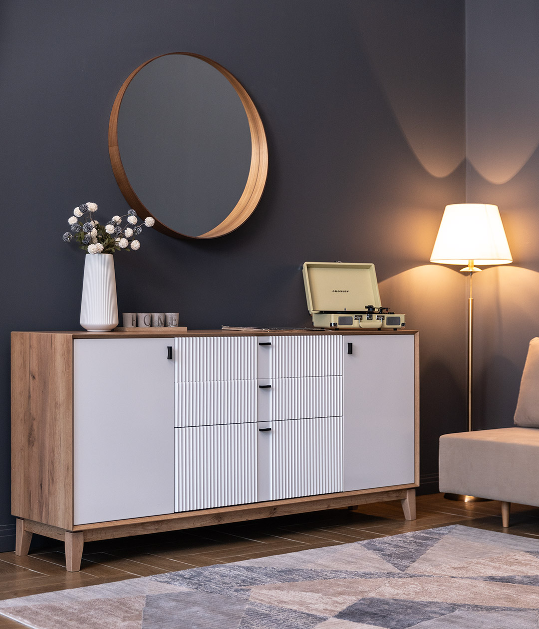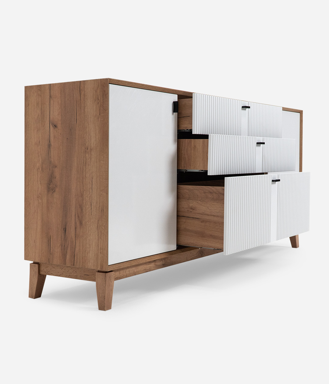 Функциональная и надежная тумба Бари — это залог уютного и аккуратного интерьера. Комбинированное наполнение предусматривает отделения за распашными дверцами, а также ящики полного выдвижения. Высокие ножки, выполненные из массива, не перегружают обстановку и позволяют удобно проводить уборку. Петли с доводчиком обеспечат плавное и бесшумное закрывание дверцы.