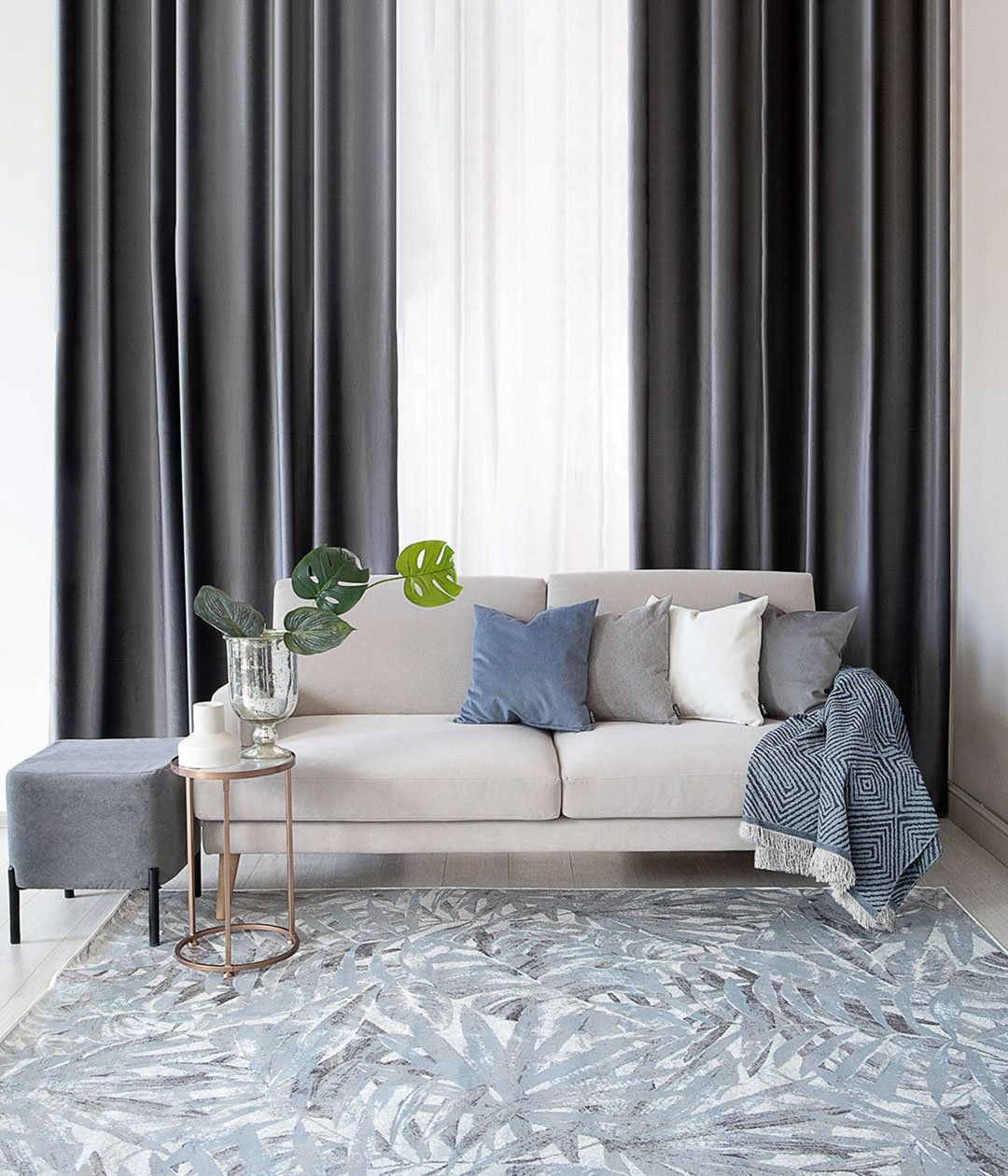 Ковер BERNE FERN позволит вам ощутить гармонию и умиротворение. Красивый дизайн, в котором прослеживаются листья монстеры и нежные оттенки холодной гаммы, сразу завораживает.