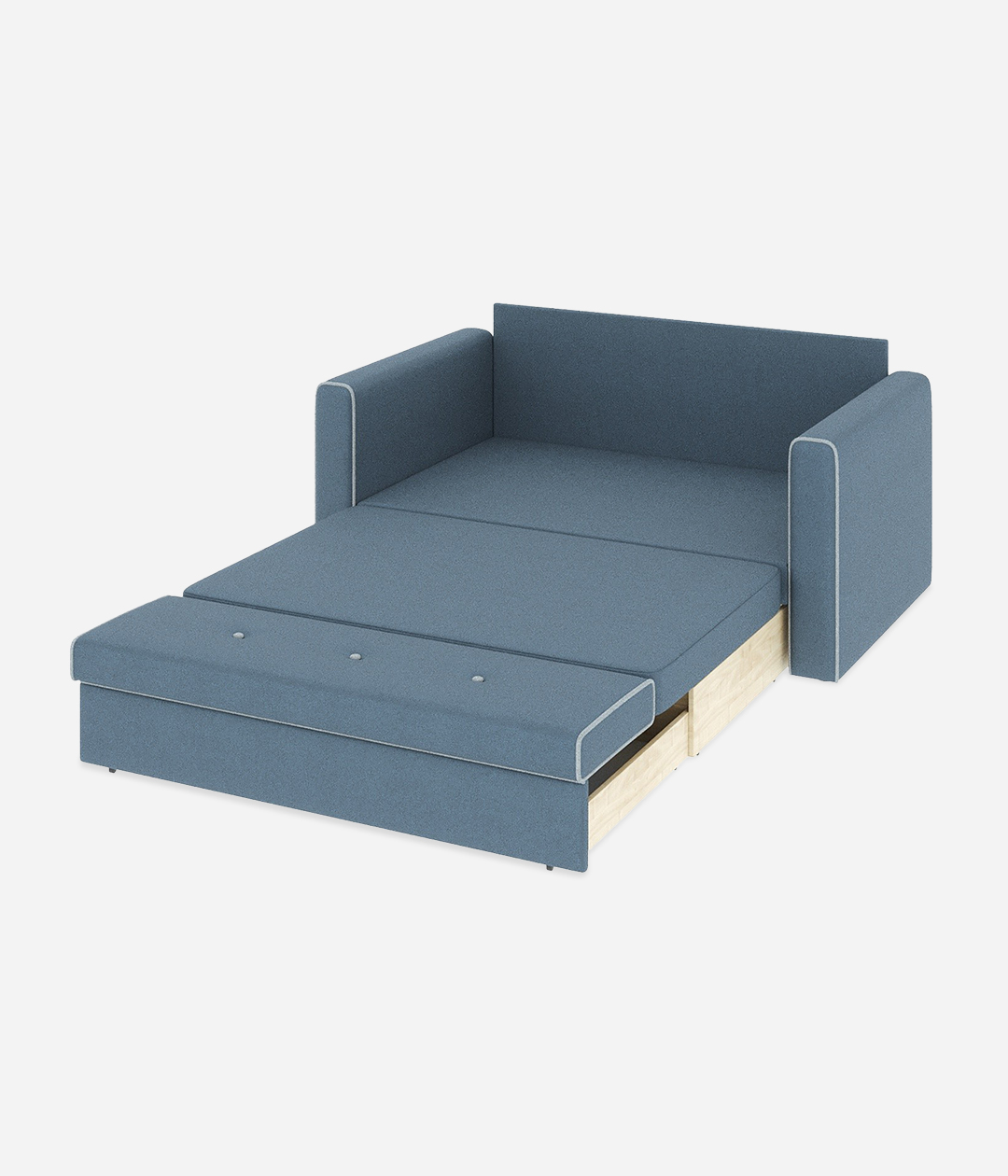 Идеальный пример эргономичной мебели. Небольшой по габаритам диван легко трансформируется в полноценное спальное место для двоих.