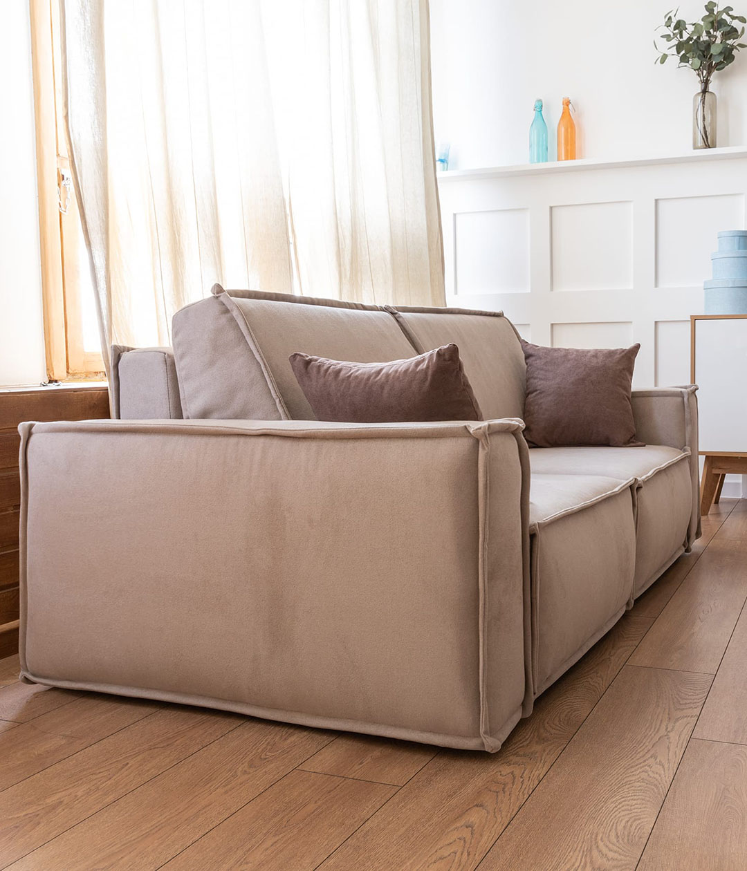 Продуманная конструкция усилена березовой фанерой и брусом из хвойных пород дерева. Это повышает срок службы дивана, позволяет выдерживать большой вес и частое использование без деформаций и скрипа. Поэтому мы даем рекордную на рынке гарантию — 5 лет!