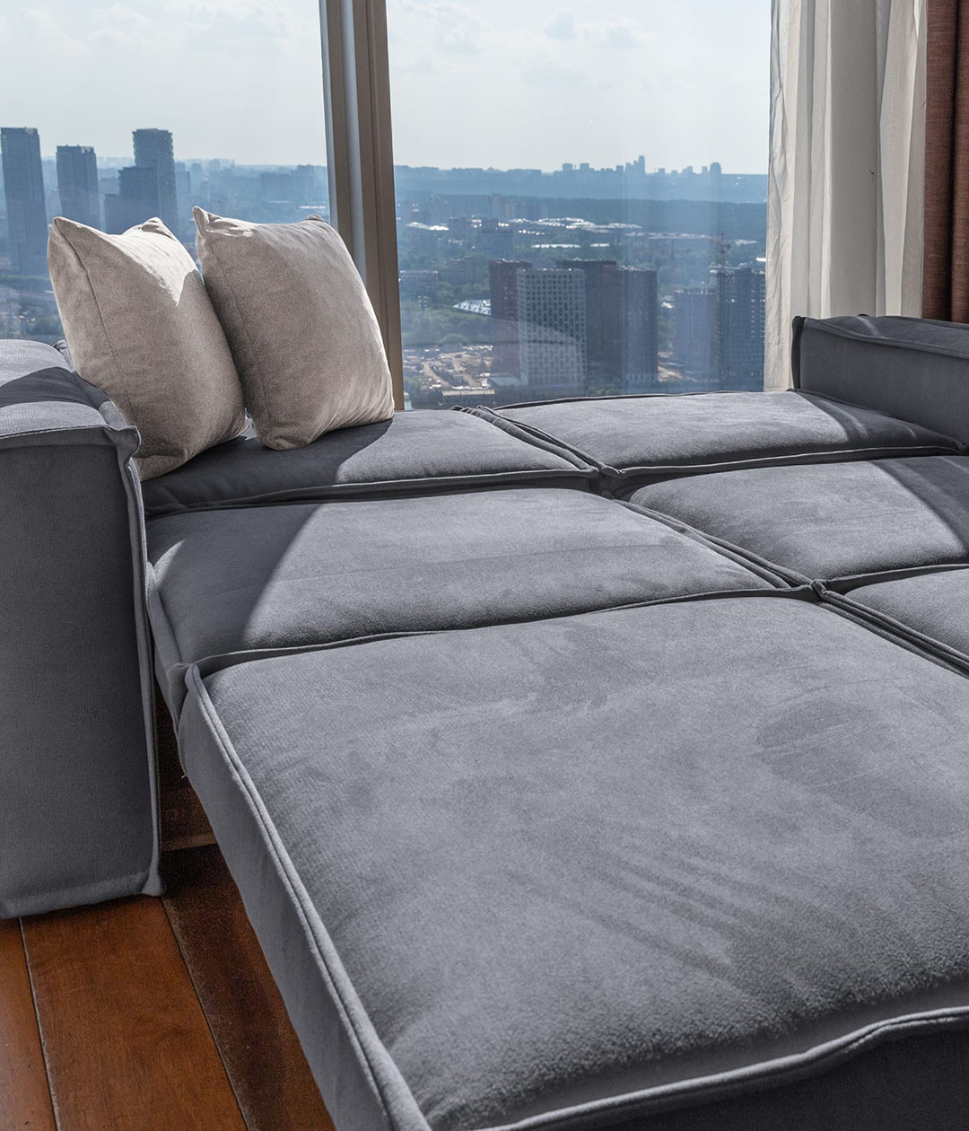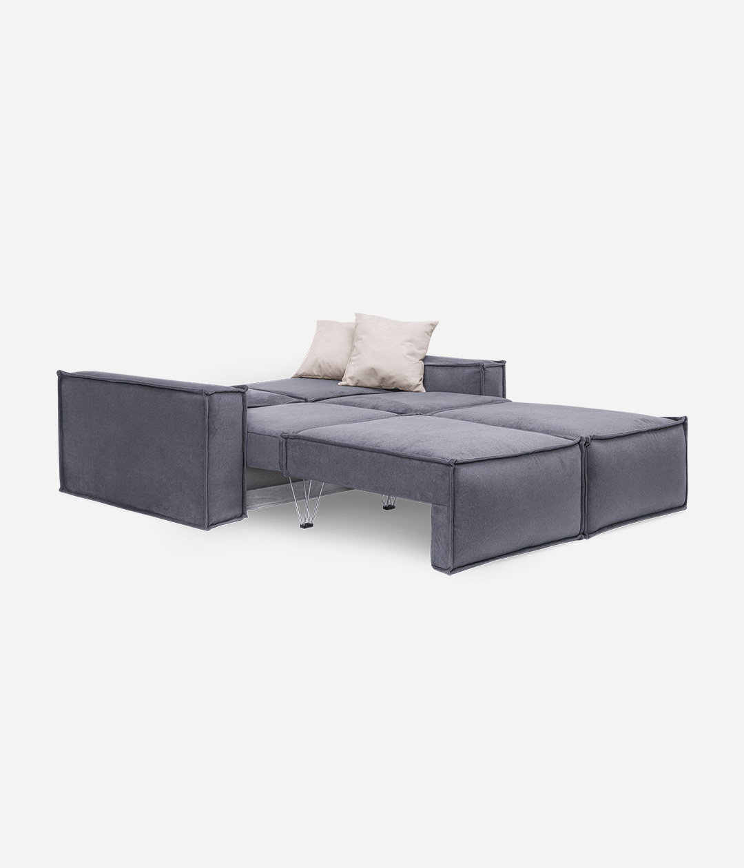 В собранном виде занимает очень маленькую площадь, в разложенном — образует просторное и удобное спальное место для двоих.