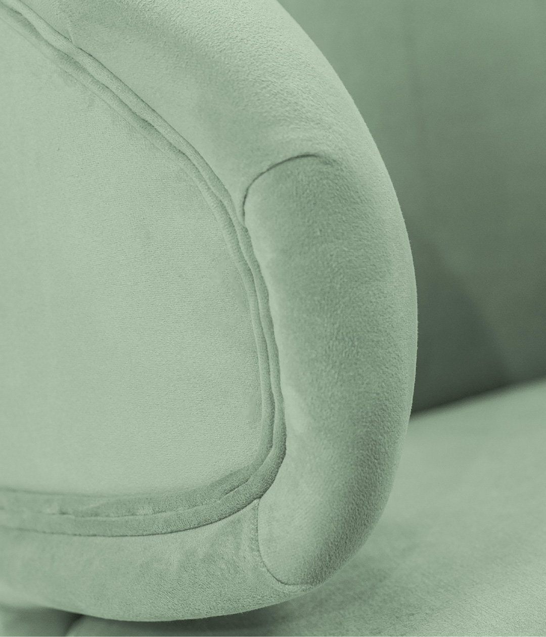 Высокие ножки кресла делают его форму легкой, максимально открывая пространство. К тому же, такая конструкция упрощает уборку, делая доступным напольное покрытие.