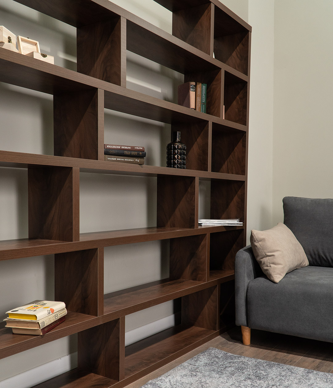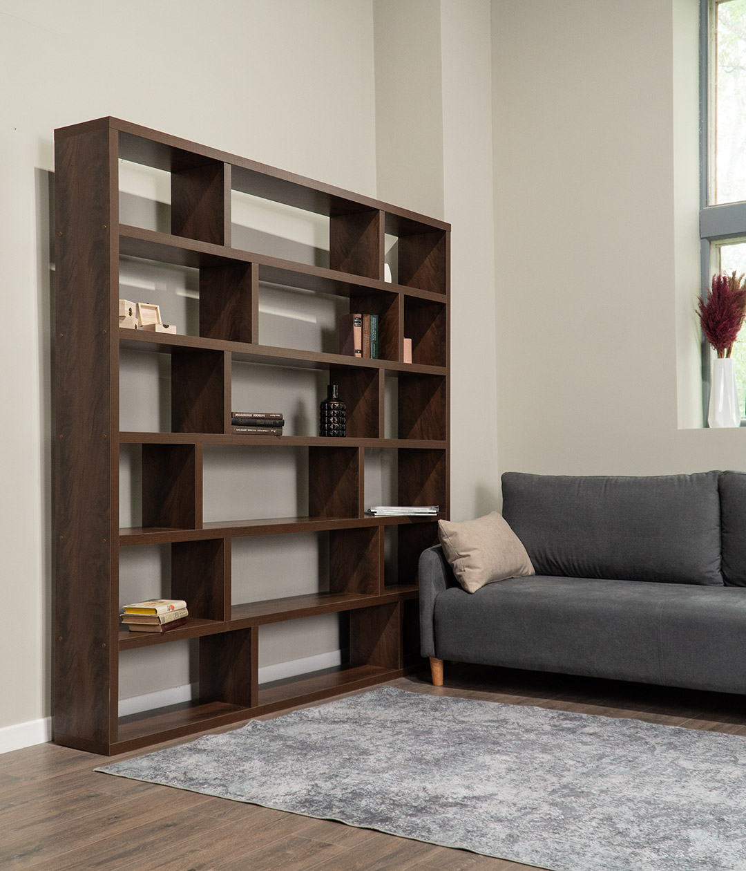 Практичный стеллаж впишется в любое помещение вашего дома. Благодаря двусторонней отделке, может служить зонирующей перегородкой или устанавливаться зеркально. Скрытый крепеж обеспечивают идеальный внешний вид. Простая самостоятельная сборка и разборка, инструмент и фурнитура в комплекте. Дизайнерски комбинируется с другими продуктами RIDDLE.