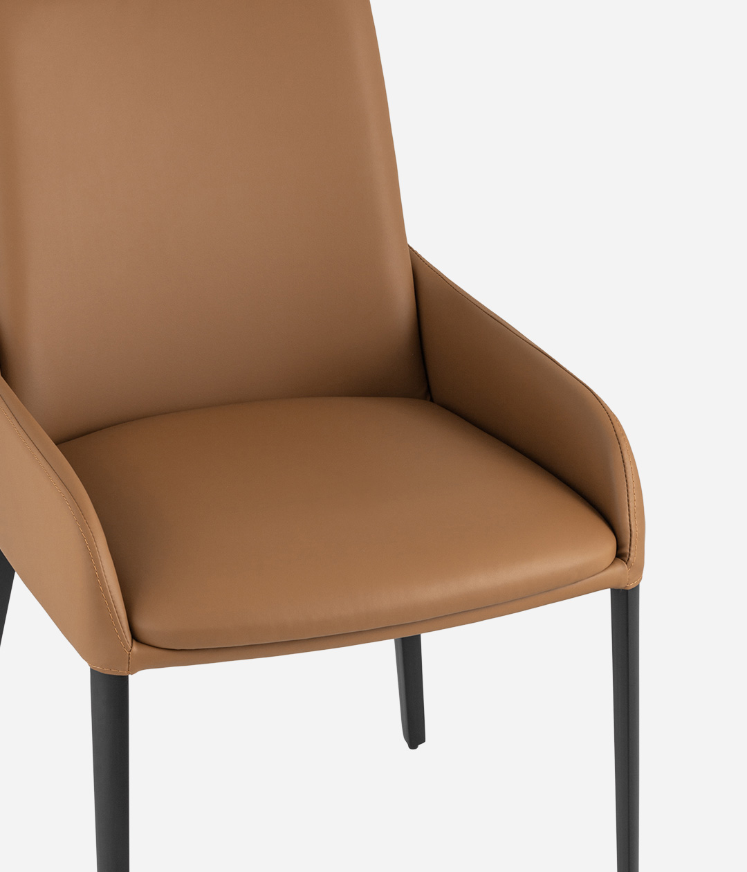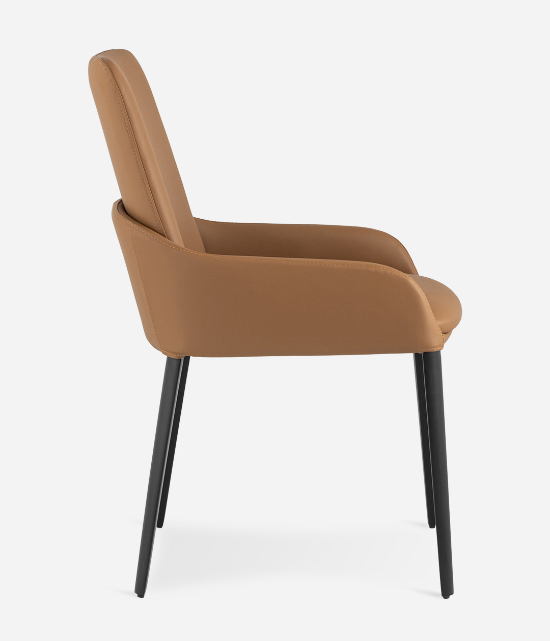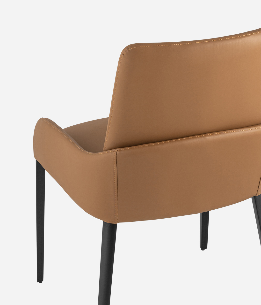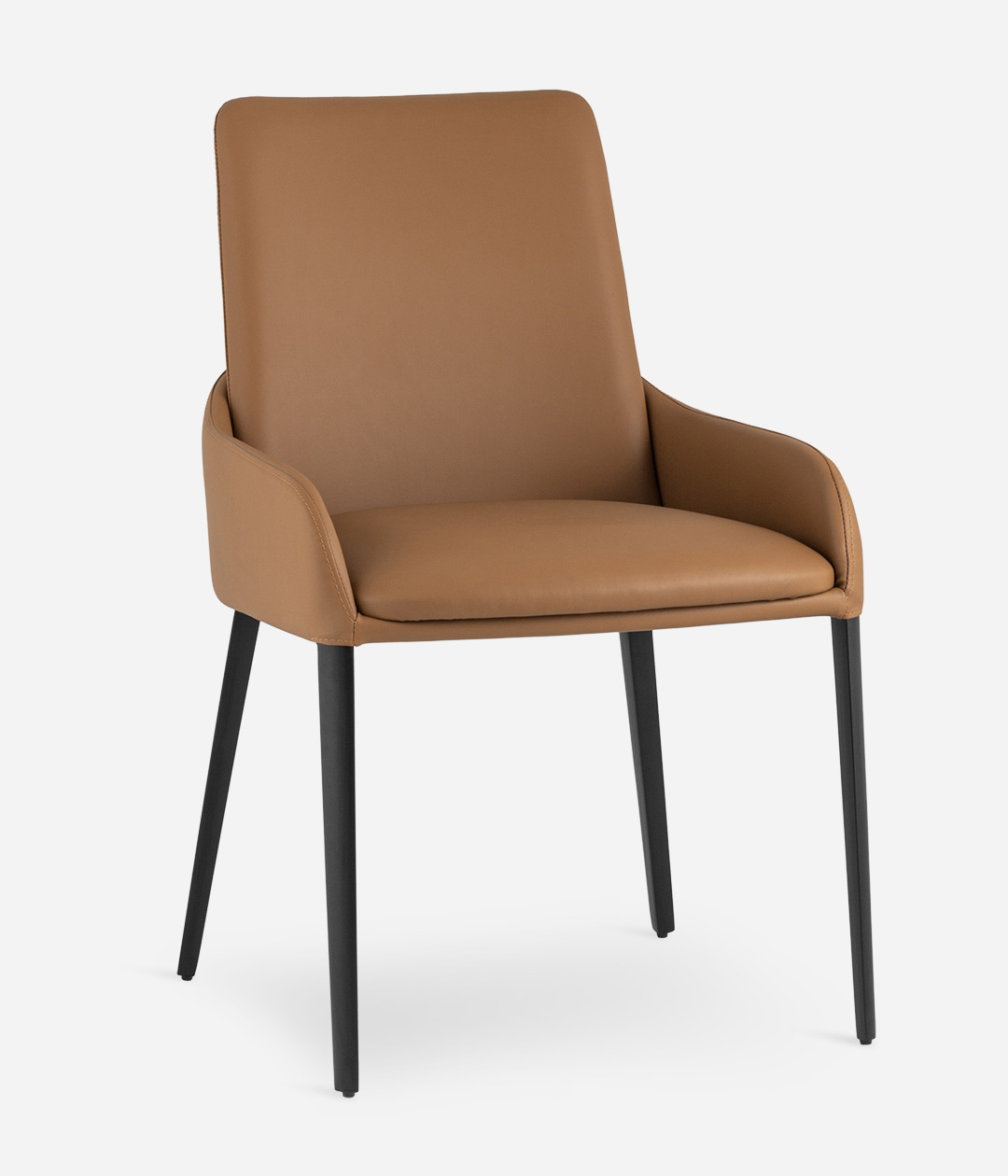 Стильный мягкий кухонный стул с низкими подлокотниками. Красивый дизайн украсит как столовую зону кухни и гостиной, так и дополнит интерьер ресторана или кафе.